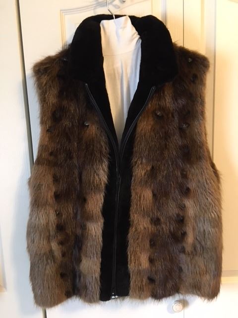 Canadian Beaver vest with sheared beaver collar. Unisex . Size Large to X-large