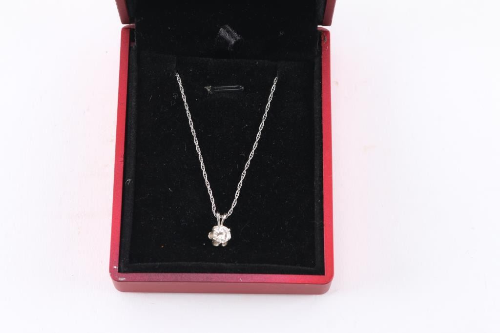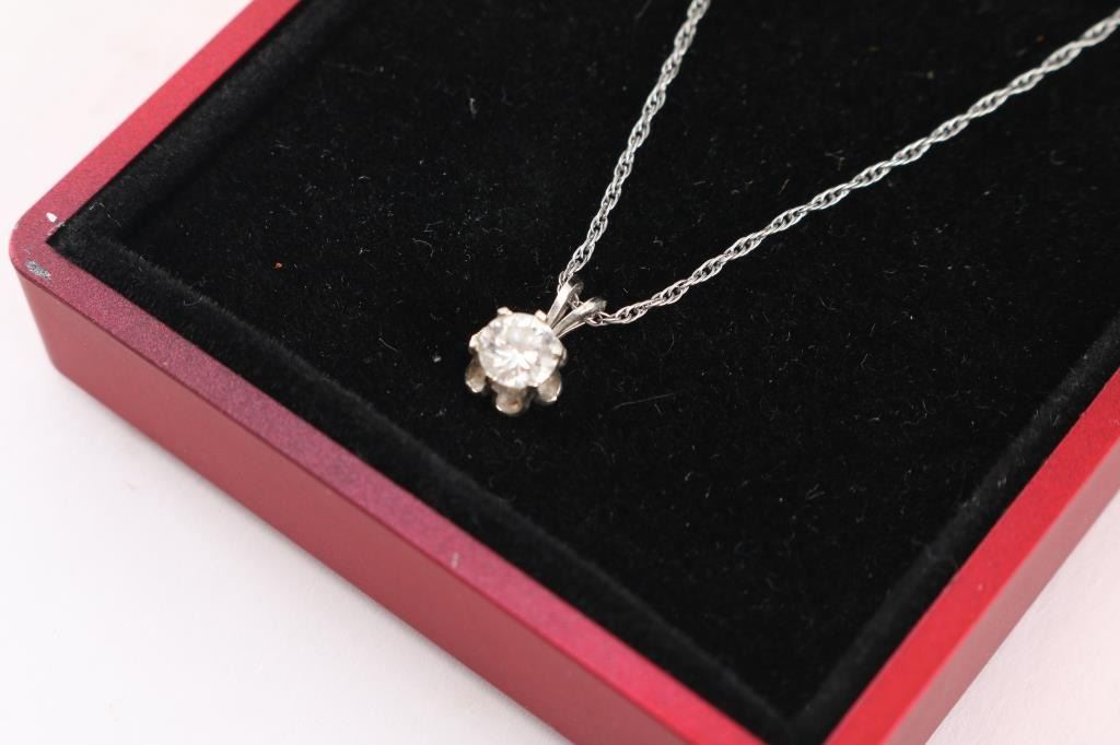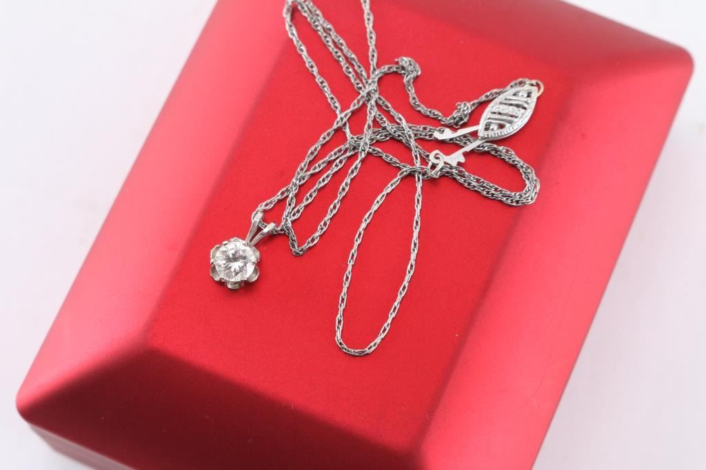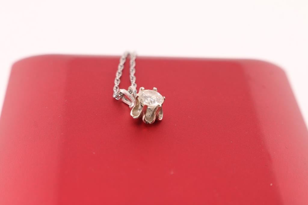 Round Cut Stone Set In 14kt White Gold On A Delicate White Gold Chain