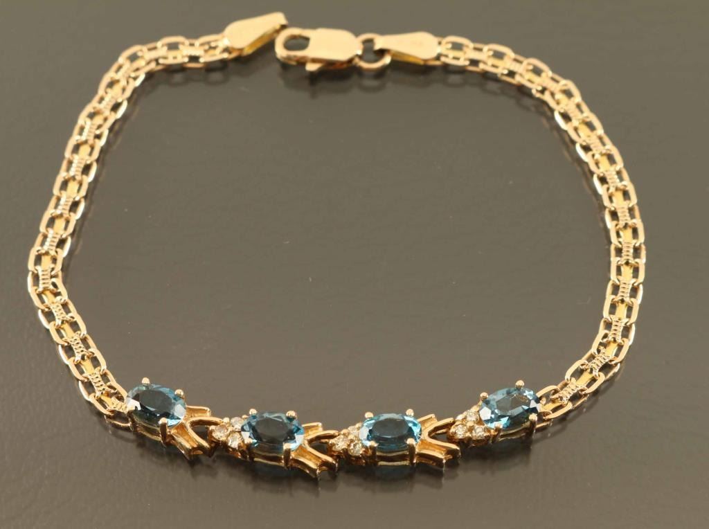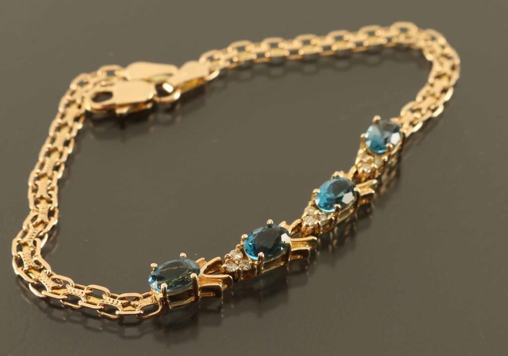 4 Oval Shaped Topaz Stones Accented With White Topaz Set In 14 Karat Yellow Gold.