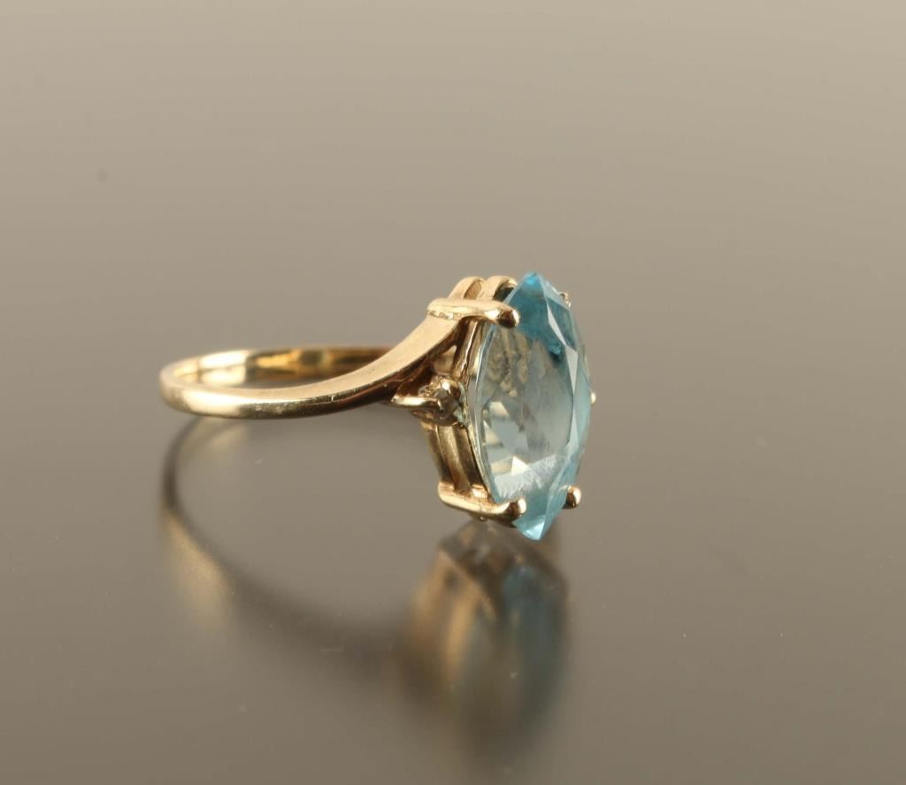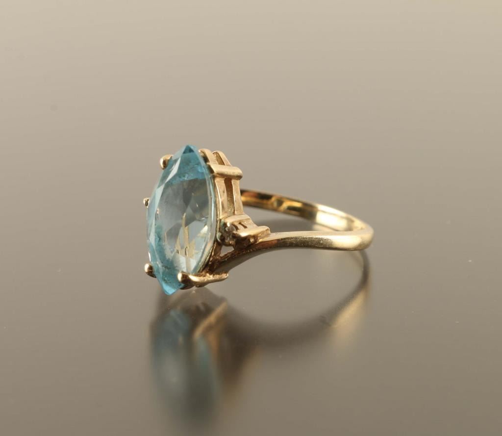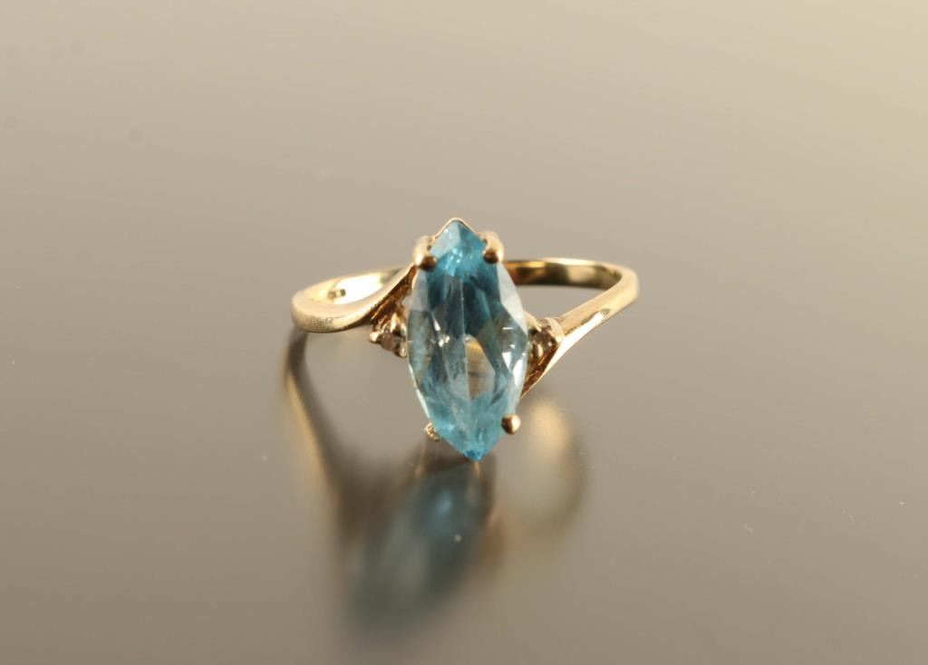 Has Two Small Side Diamonds Set In Yellow Gold Size 7.
