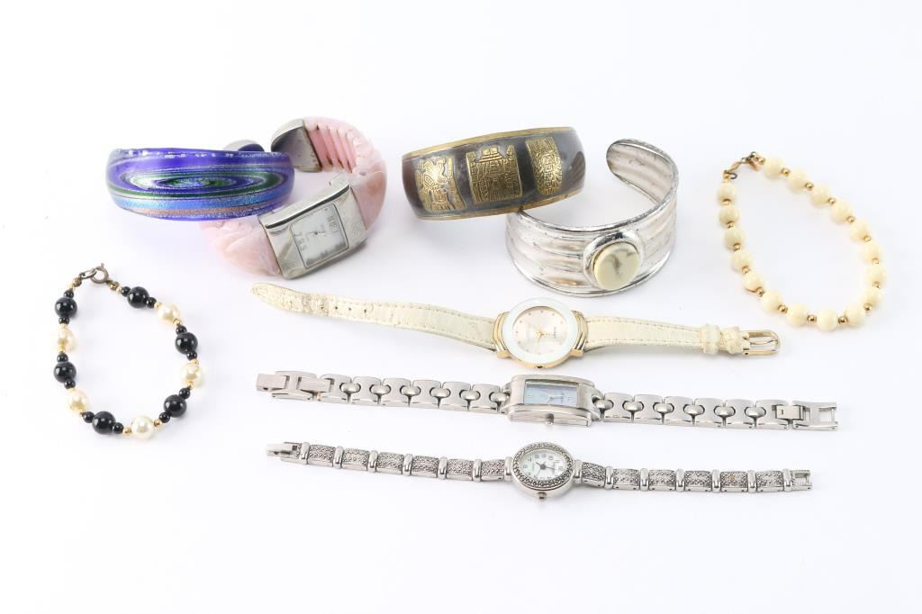 Includes 4 wrist watches, 2 bracelets and 3 cuffs.