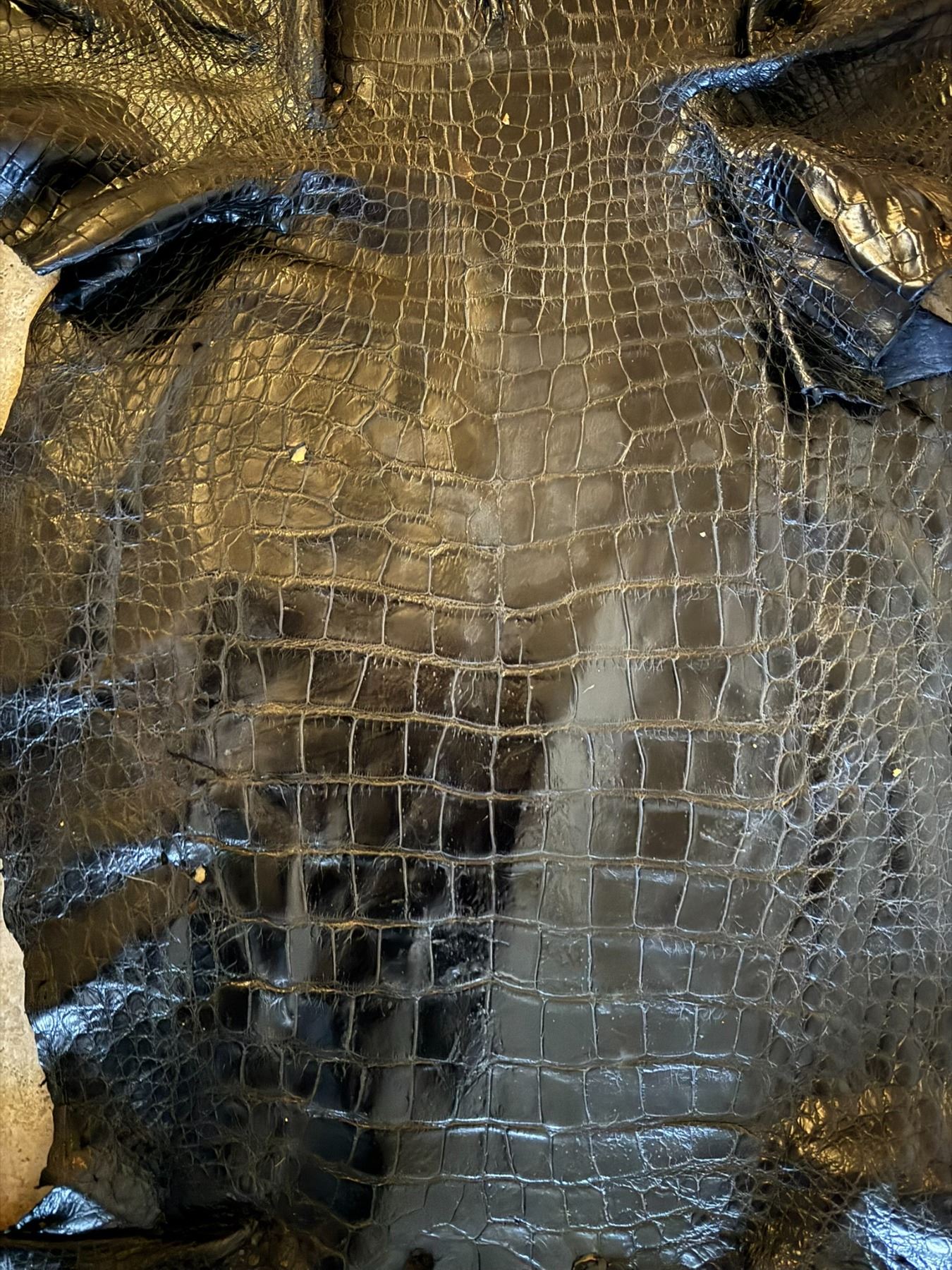 Package includes: One 10ft 6in Black American Alligator Soft Tanned Belly Hide