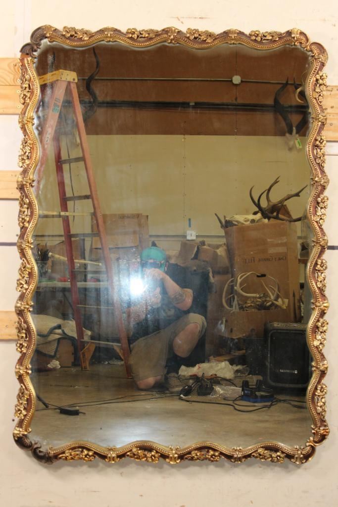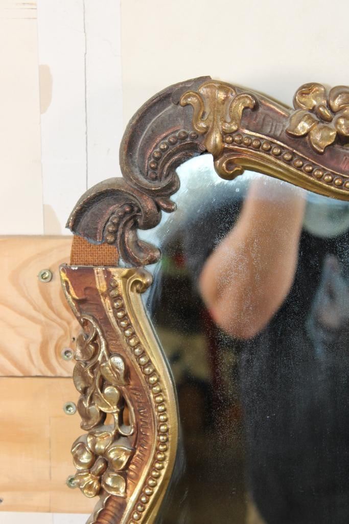 Lovely Large Antique Rococo Style Metal Mirror. It measures 4.5" Tall x 39" Wide. ANTIQUE MIRRORS