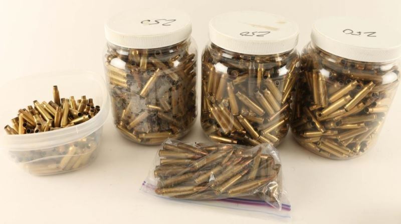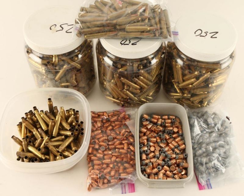 750 Brass Casings-all 223, Bag Of Loose Loaded 223, 9mm Bullets, Two Small Containers Of Bullets Unknown Caliber And One Other Container Of 223 Brass.