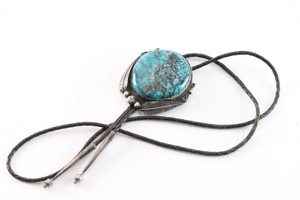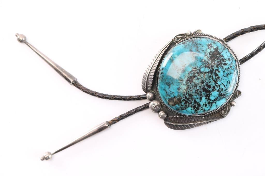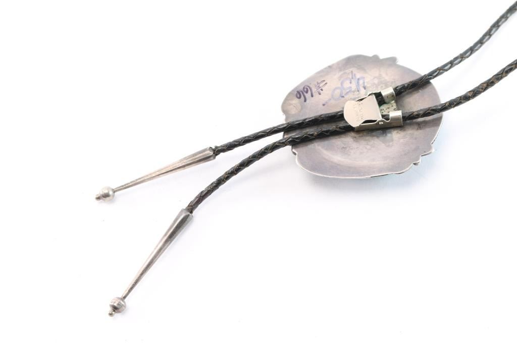 large round stone with a beautiful matrix set in sterling silver. Maker marked Robert EG Phx on back.