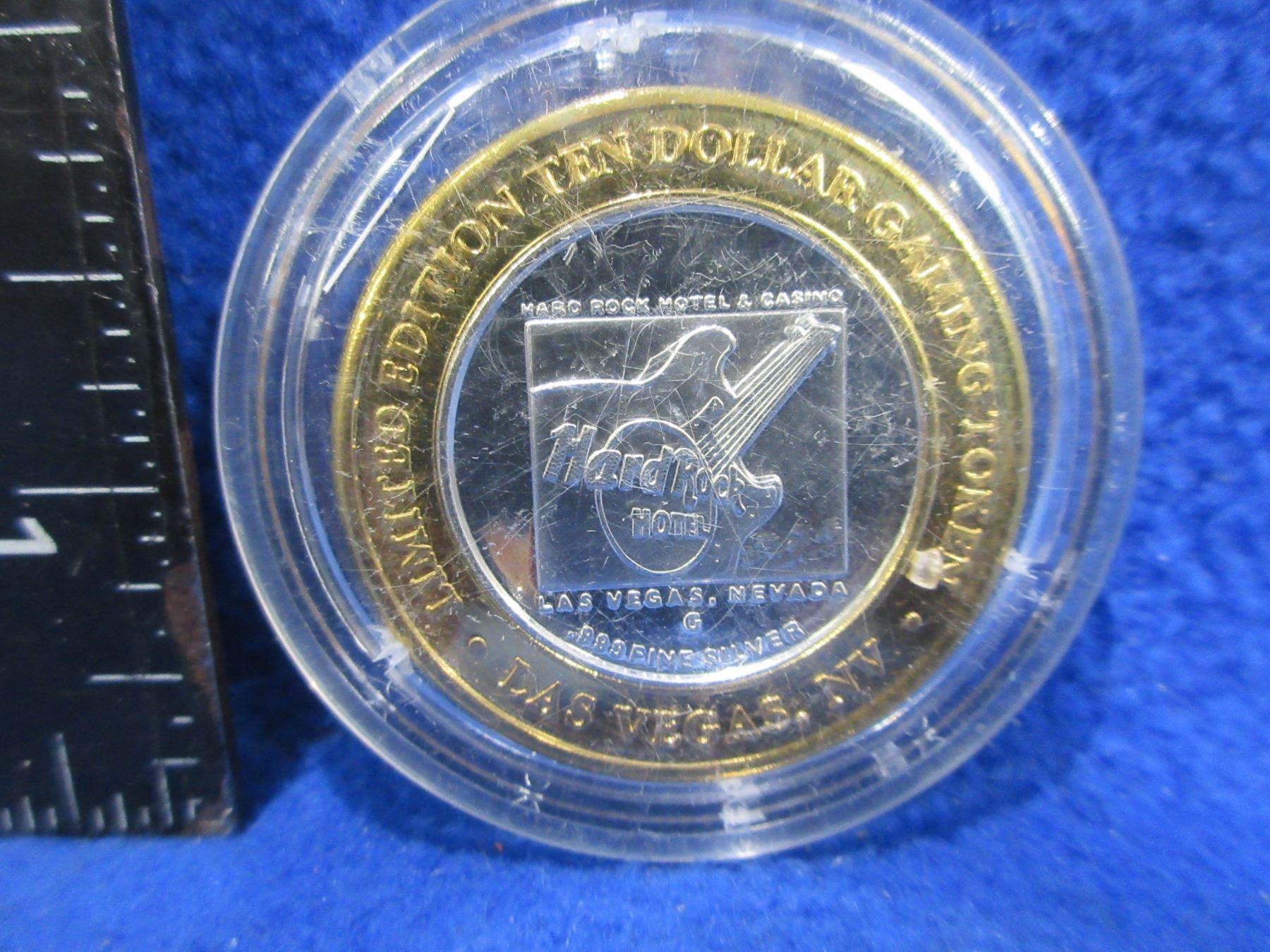 Las Vegas, Nevada Limited Edition Ten Dollar Gaming Token - Hard Rock Hotel - Bimetallic: Silver (.999) Center in Copper Ring - Sealed in Plastic Case