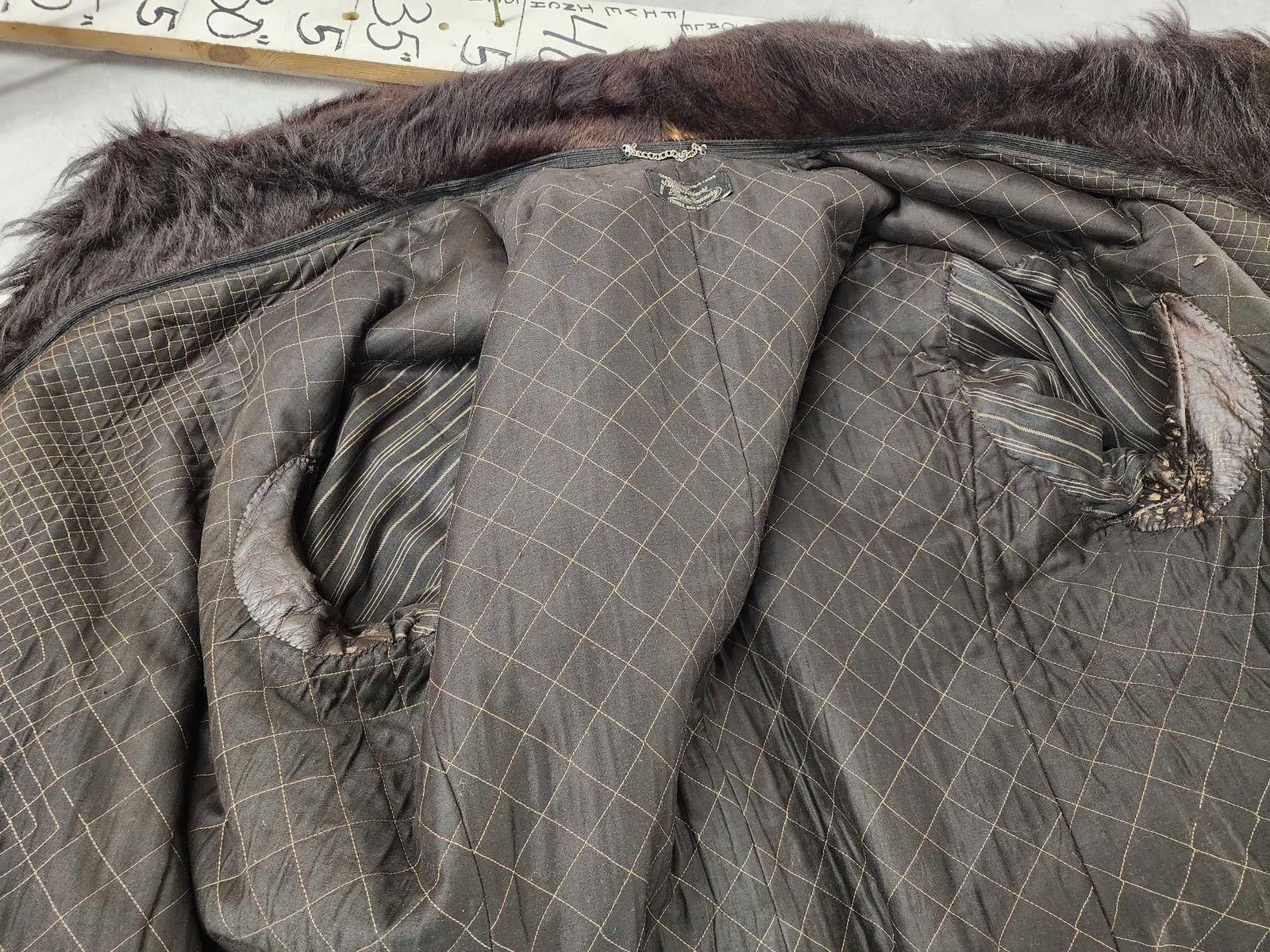 73.7 Manufactured by Three Rivers Robe Tannery Company that opened in 1893 GREAT condition for its age approximately extra Large size hard to find a coat this size that's that old comes with a bonus vintage pair of earrings muffs