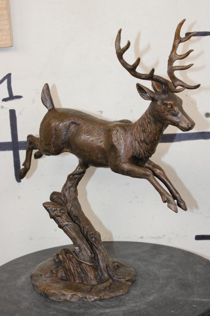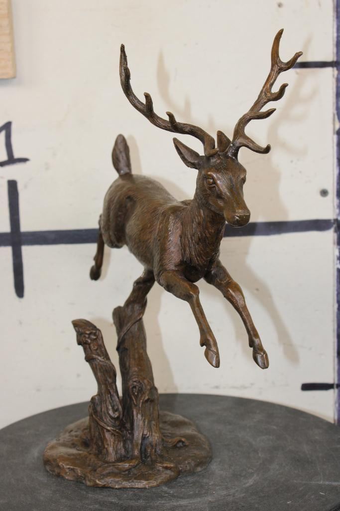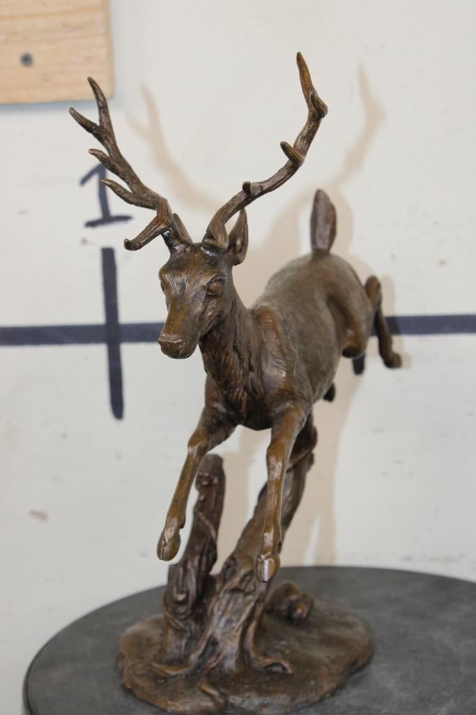 Leaping DEER BRONZE. The Total Weight is 4 lbs 10 oz and it measures 13" Tall x 10" Long x 5.5" Wide. COLLECTIBLE ART BRONZE SCULPTURES