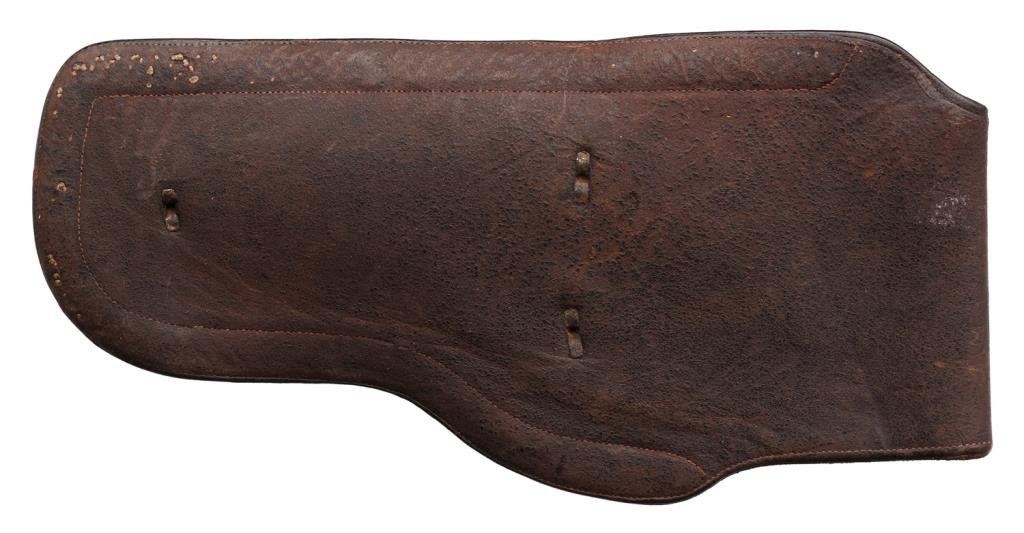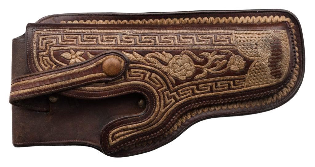 Leather pitiado holster for a 1911 style semi-auto pistol in overall good condition with wear to the muzzle end of the holster. Classic look, ca 1920’s. Est.: $100-$175.