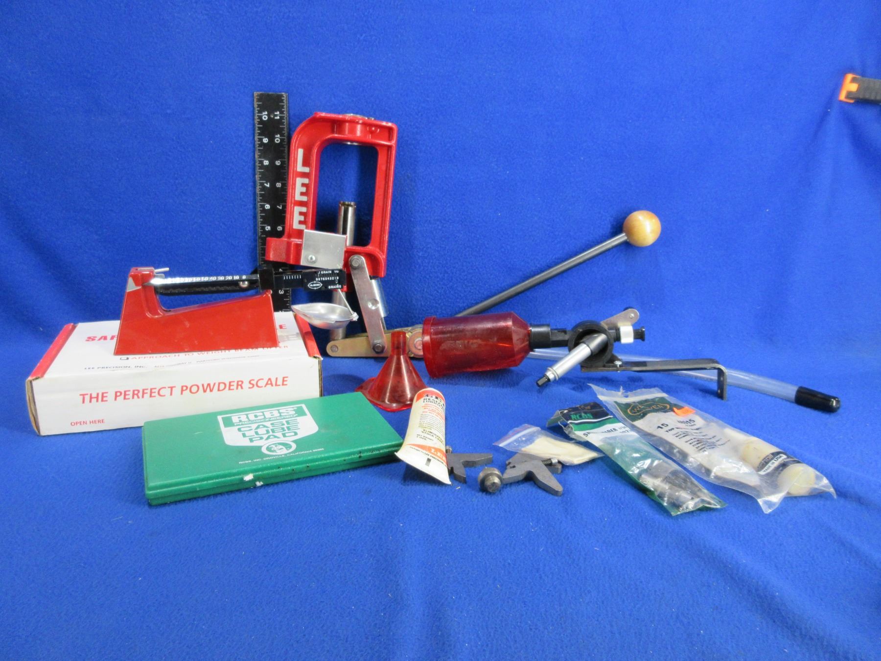 Lee Challenger Breech Lock Single Stage Press - Comes with Lee Powder Scale, Lee Powder Measure, RCBS Case Lube Pad, Funnel, Etc.