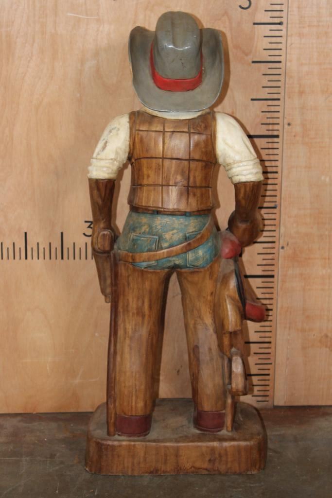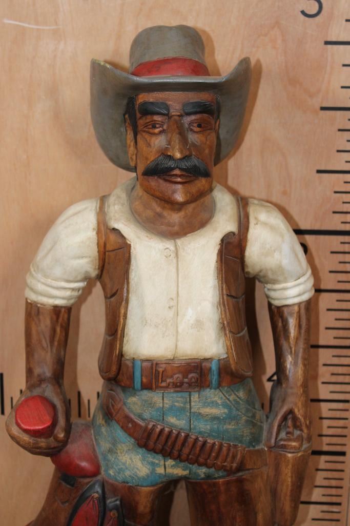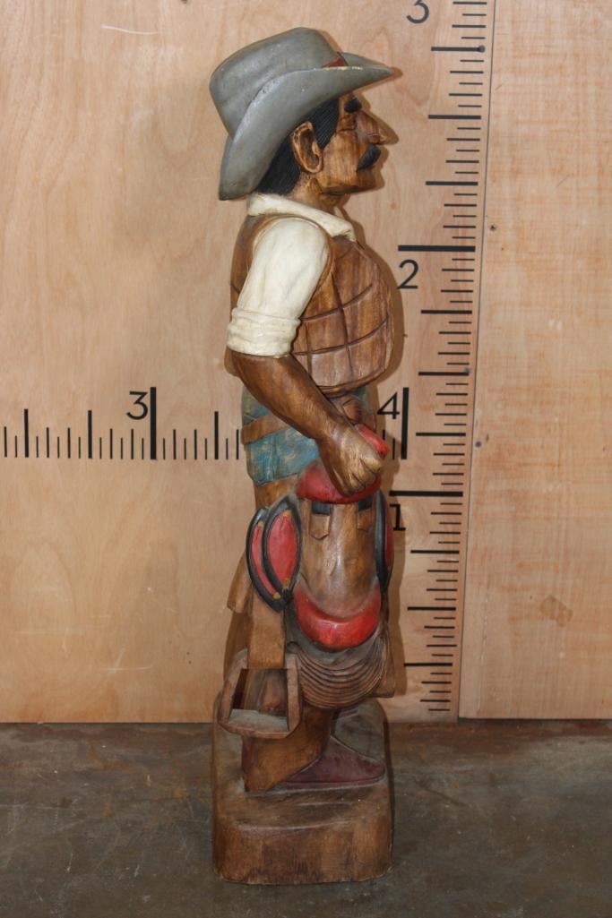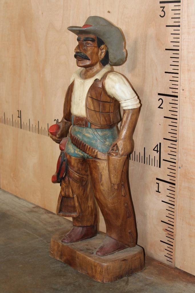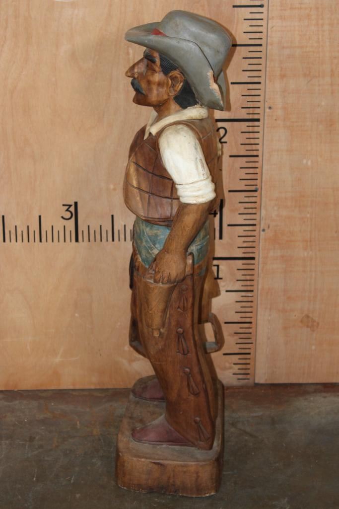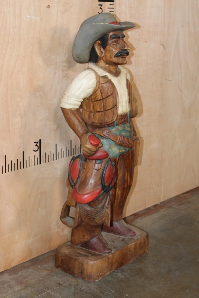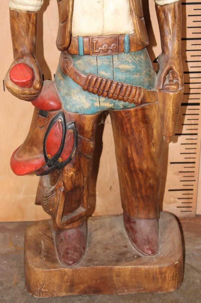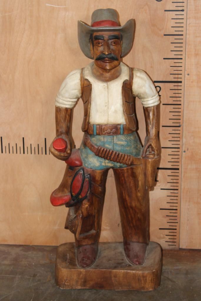 Lee Jeans Hand-carved and Painted Wood COWBOY Advertisement. It measures 35" Tall x 14" Wide x 8" Depth. The Total Weight is 28 lbs 7 oz. WESTERN COLLECTIBLE STATUES AND ADVERTISING
