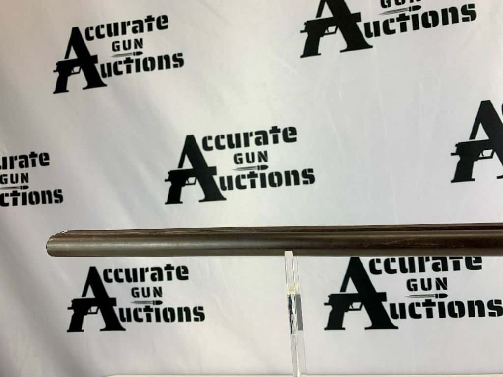 With an overall length of 43.5 this side by side comes with a beaded front sight. Also has a 7" crack down the right side of the stock. Please see photos.