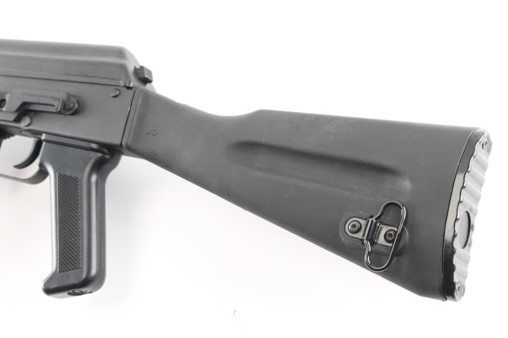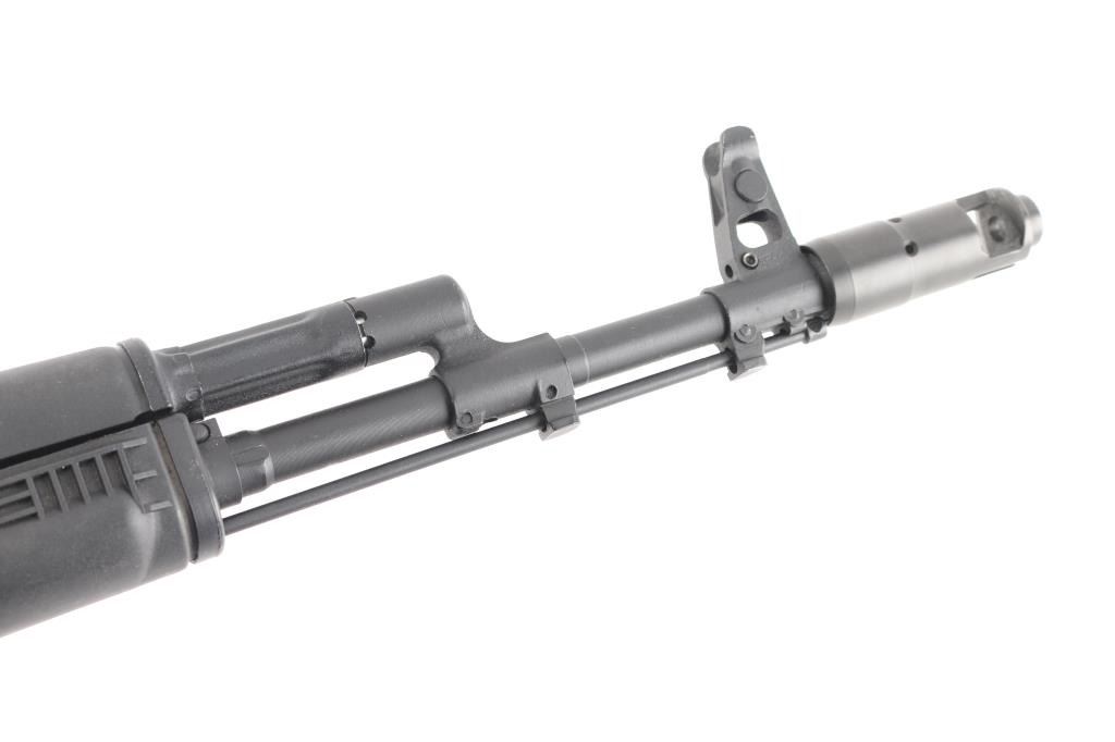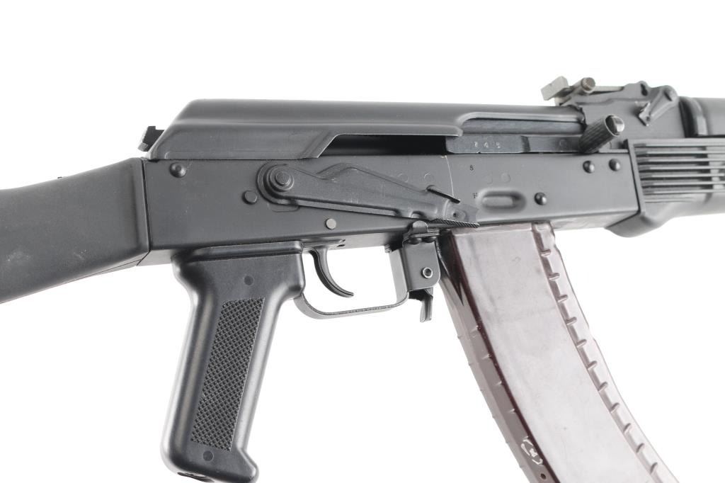 Sn: L09889746 ak-74M. Izhevsk Russia made semiautomatic rifle imported by Arsenal of Las Vegas NV. Left side of the receiver displays SAIGA / 5,45x39 and LEGION IZHEVSK RUSSIA ARSENAL LAS VEGAS NV USA. AK47/AKM Kalashnikov operating system, with standard trigger & trigger guard, pistol grip. Features matte black finish, black polymer furniture, 16" hard chrome lined barrel, threaded muzzle brake held by detent, cleaning rod, bayonet lug, fully adjustable protected post front sight, tangent rear sight, manual safety, buttstock with rubber butt pad. Left side of receiver has optic dovetail rail & mount. Bore is pristine. Overall condition is like new with few handling marks. Includes one 30-round bakelite Tula plum magazine, marked with the Tula star.NRA condition-Excellent. Modern Firearm.