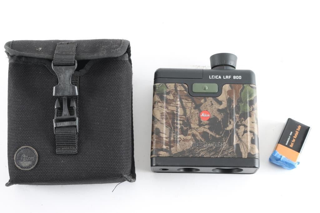 High Visibility LED display with automatic brightness adjustment. Fast ranging (less than 1 second) of distances from 10 to 800 yards. Accurate to +/- 1 yard. Single button control. Waterproof / Weatherproof (not submersible). Rugged camo armored body Compact size will fit into a side pocket (4" x 3.3/4" x 1.3/8"). Weighs only 10 ounces. Factory case with belt loop included.