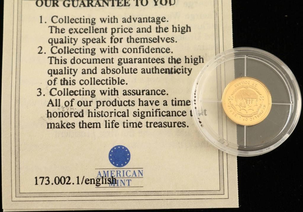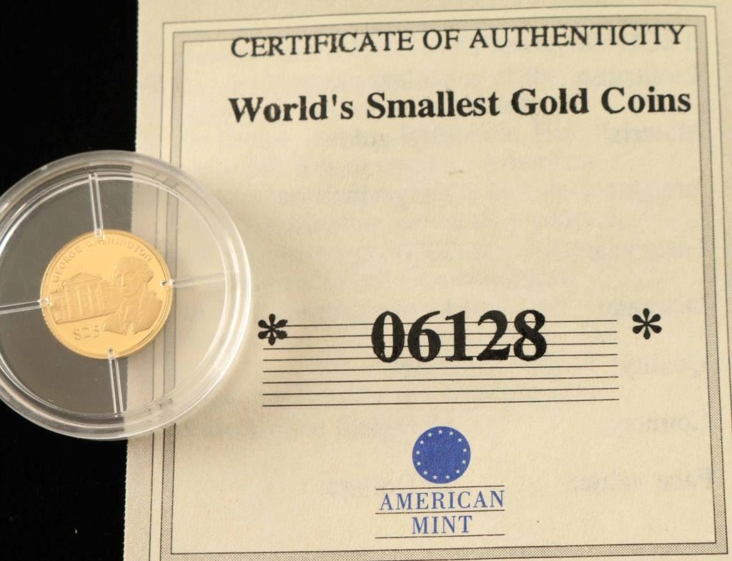 American Mint Cert. of authenticity, worlds smallest gold coins number 06128.