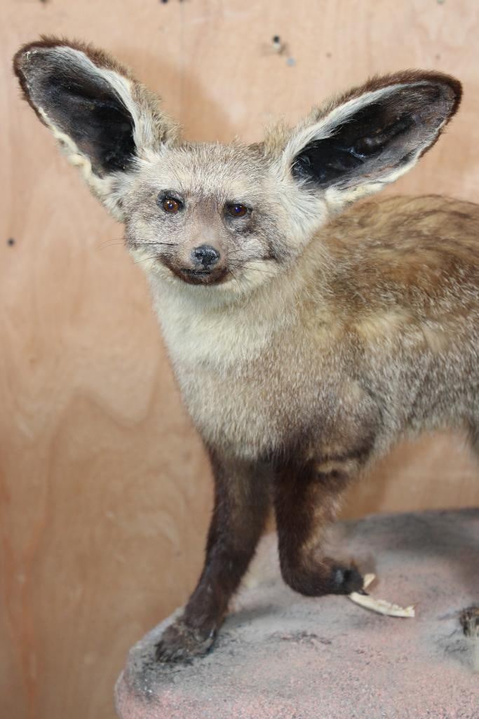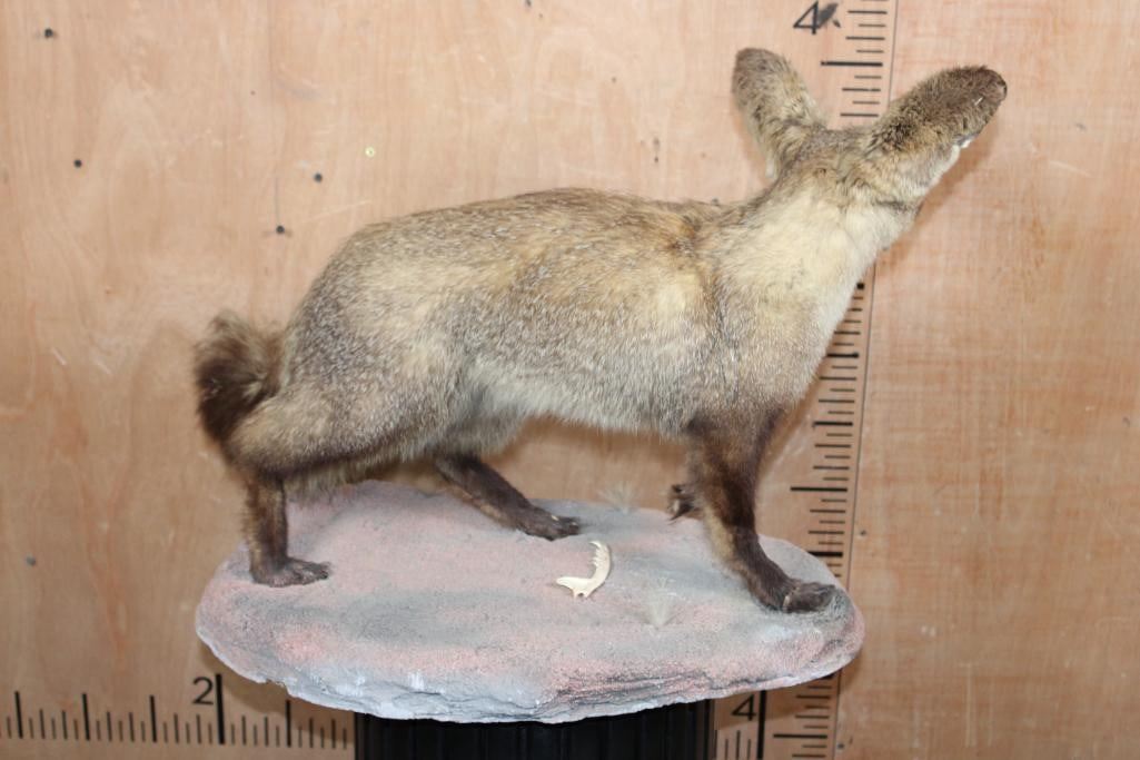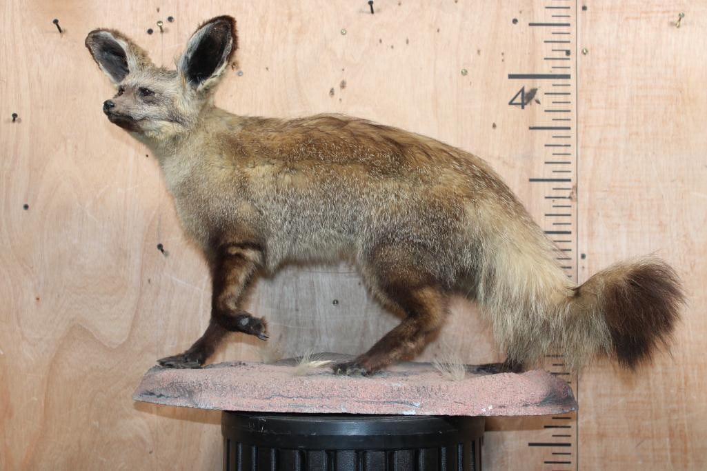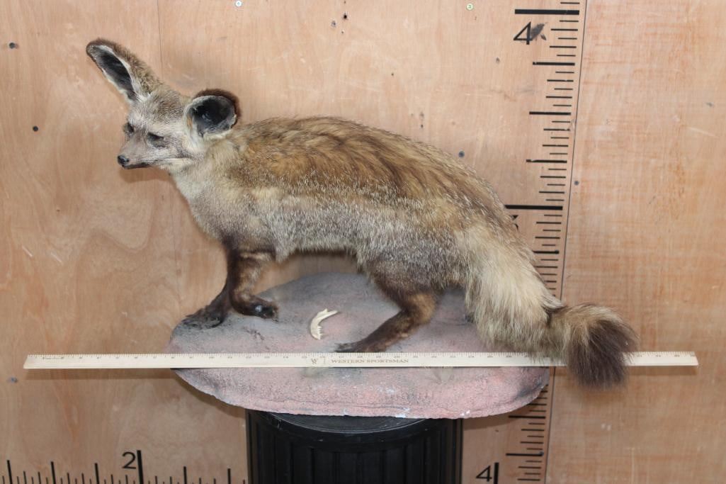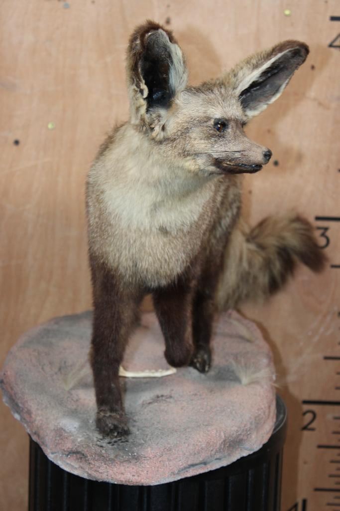 Very Nice Life-sized BAT-EARED FOX on a Natural Base. It measures 27" Long x 14" Wide x 19" Tall and is in Good Condition. TAXIDERMY