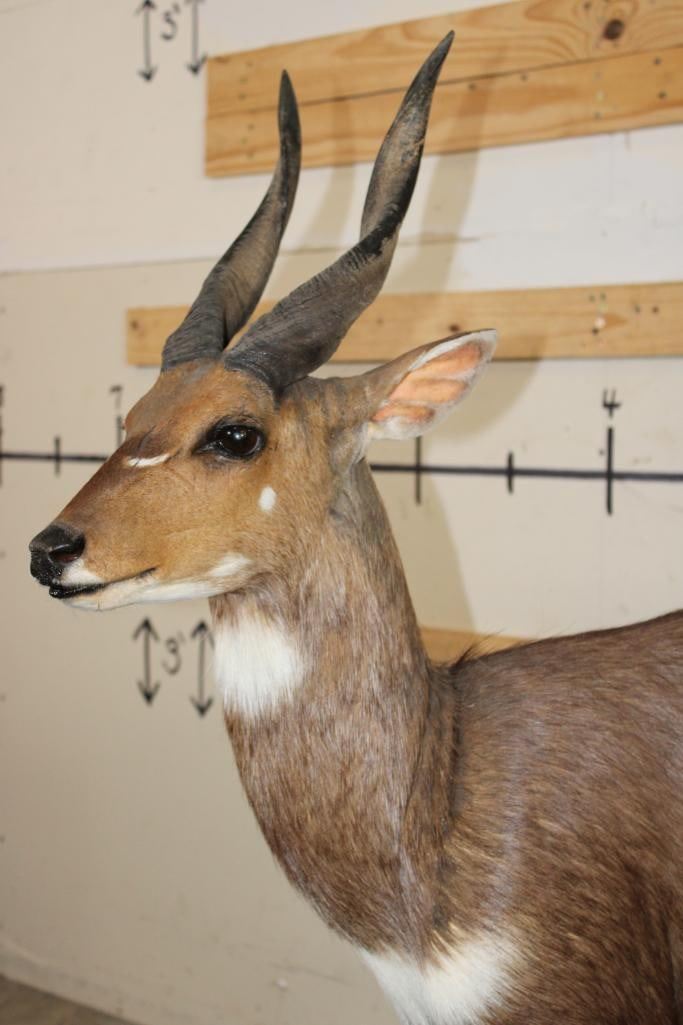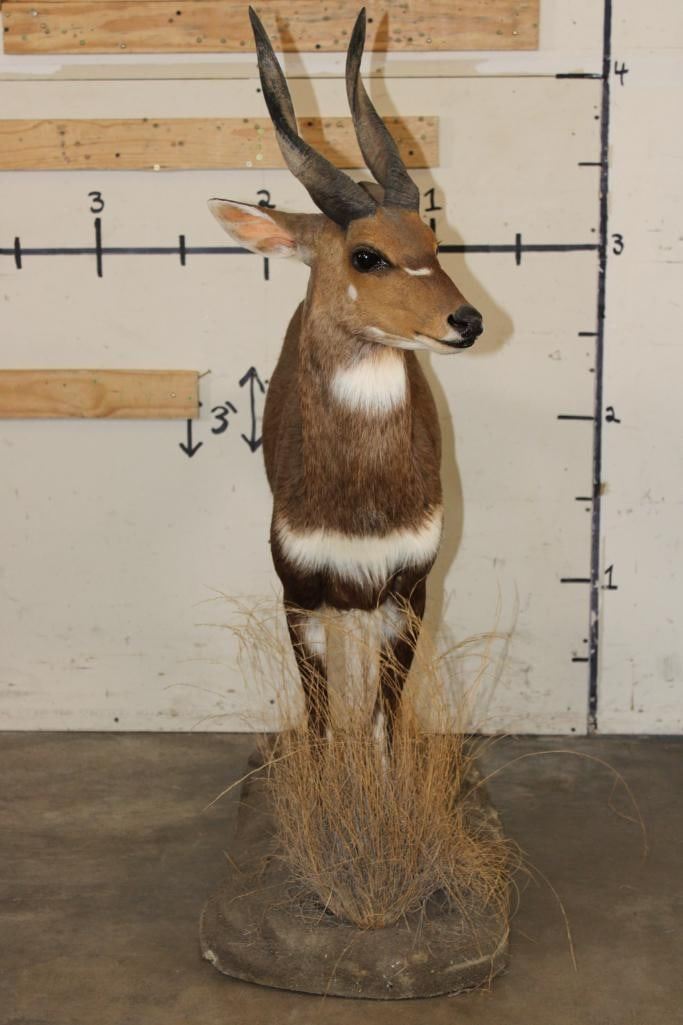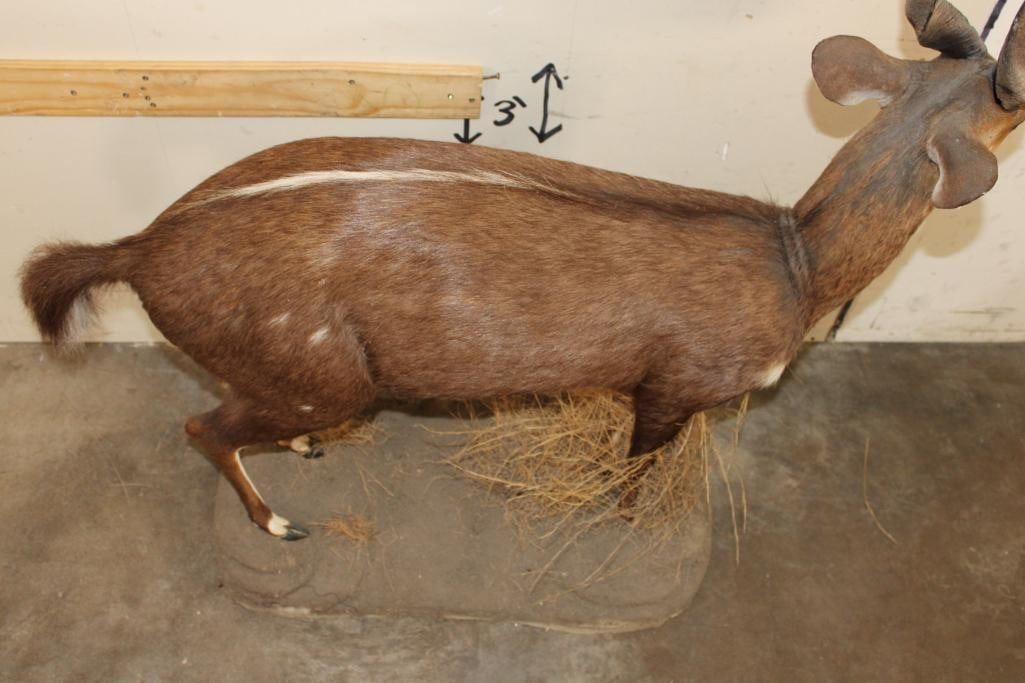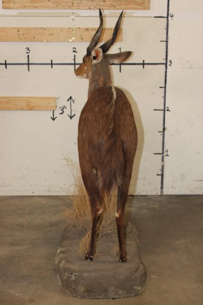 Very Nice, Clean, and Newer Life-sized BUSHBUCK. It is on a light weight Foam Base and measures 49" Long x 17" Wide x 50" Tall. It is in Very Good Condition. TAXIDERMY