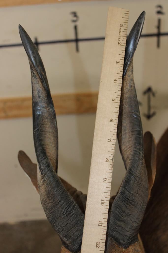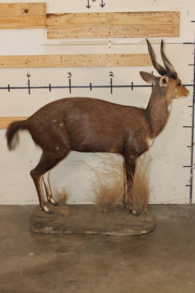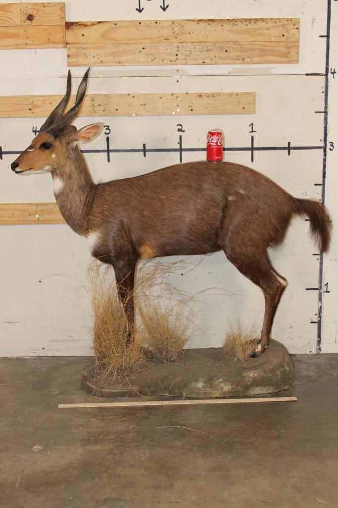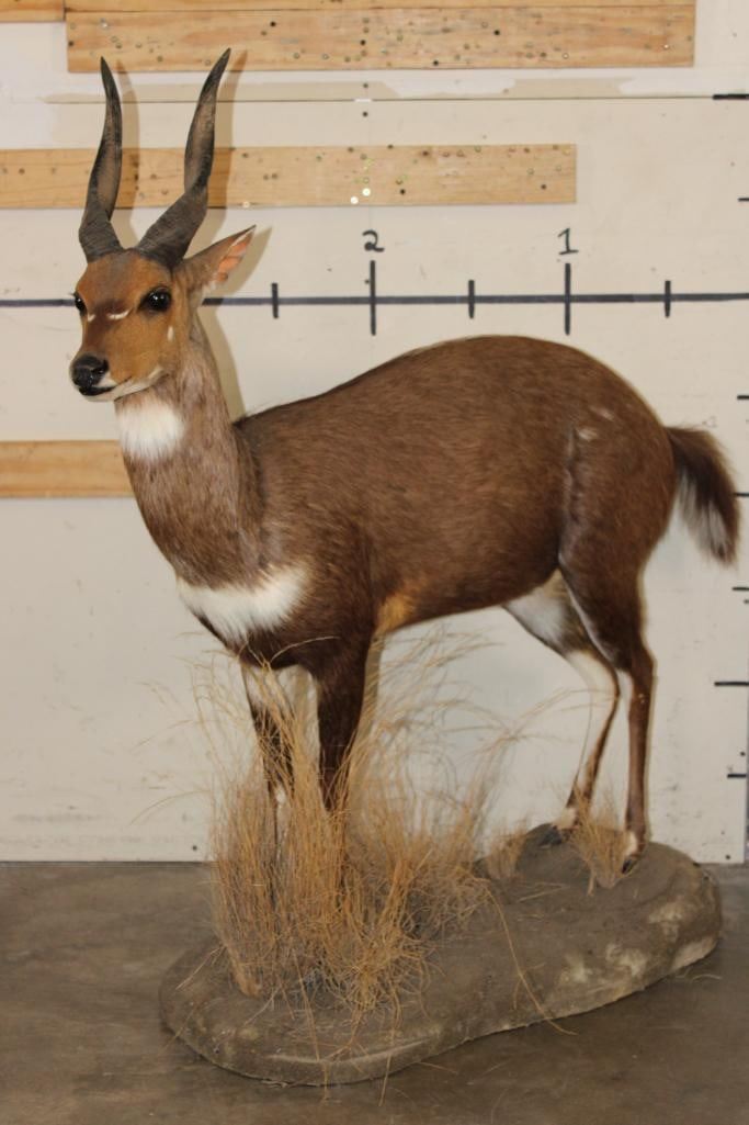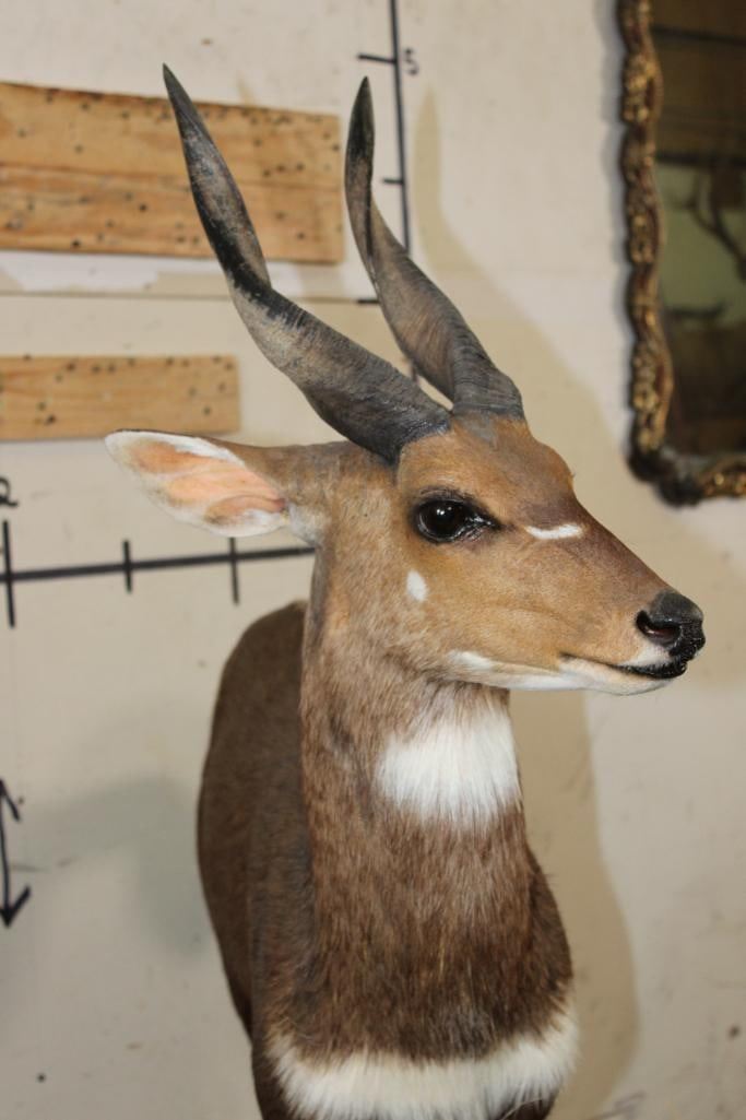 Very Nice, Clean, and Newer Life-sized BUSHBUCK. It is on a light weight Foam Base and measures 49" Long x 17" Wide x 50" Tall. It is in Very Good Condition. TAXIDERMY