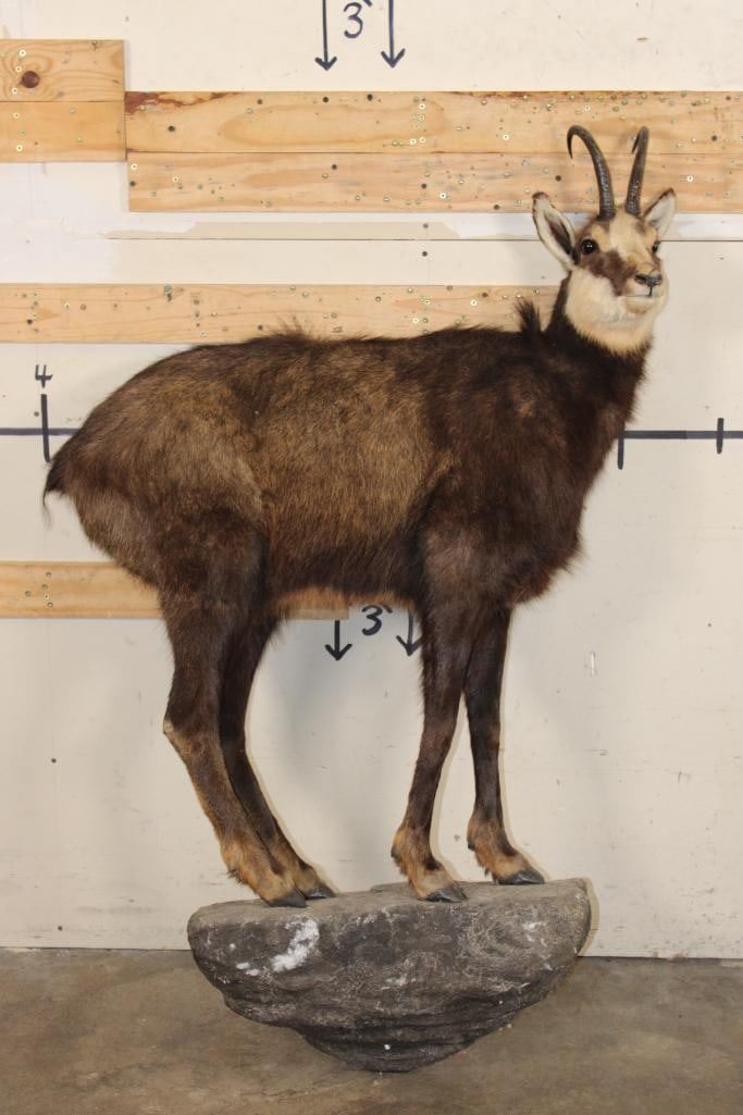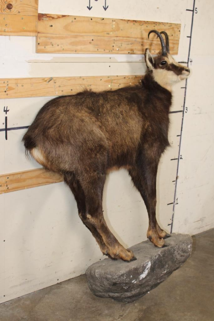 Nice Life-sized CHAMOIS on a Light Weight Wall Hanging Base. It measures 56" Tall x 37" Long x 13" Depth (from the wall). It is in Good Condition. TAXIDERMY