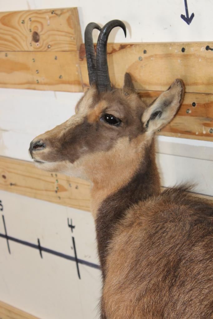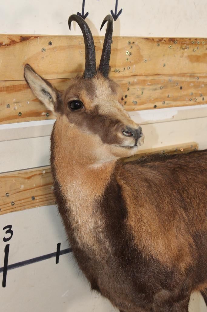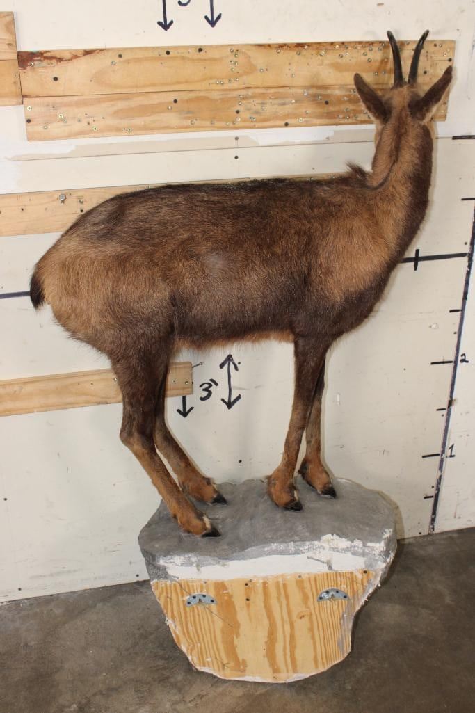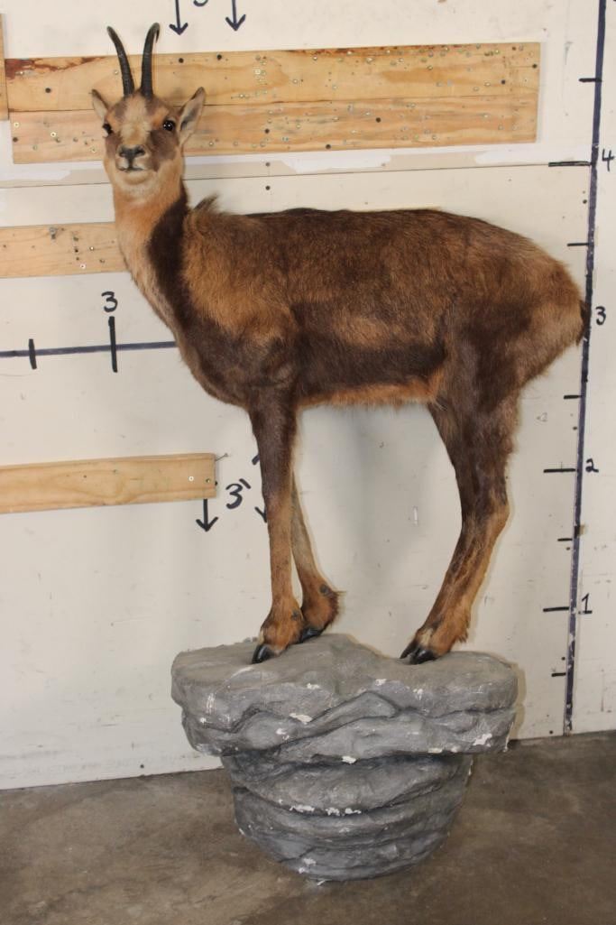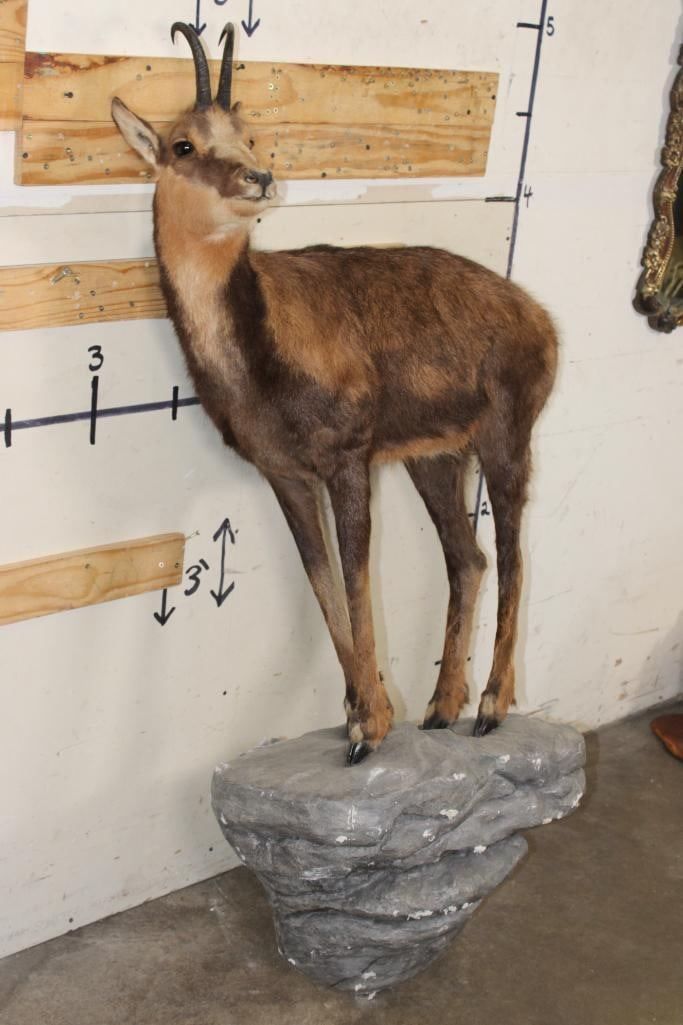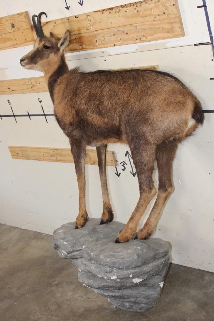 Nice Life-sized CHAMOIS on a Light Weight Wall Hanging Rock Base. It measures 60" Tall x 36" Long x 15" Depth (from the wall). It is in Good Condition. TAXIDERMY