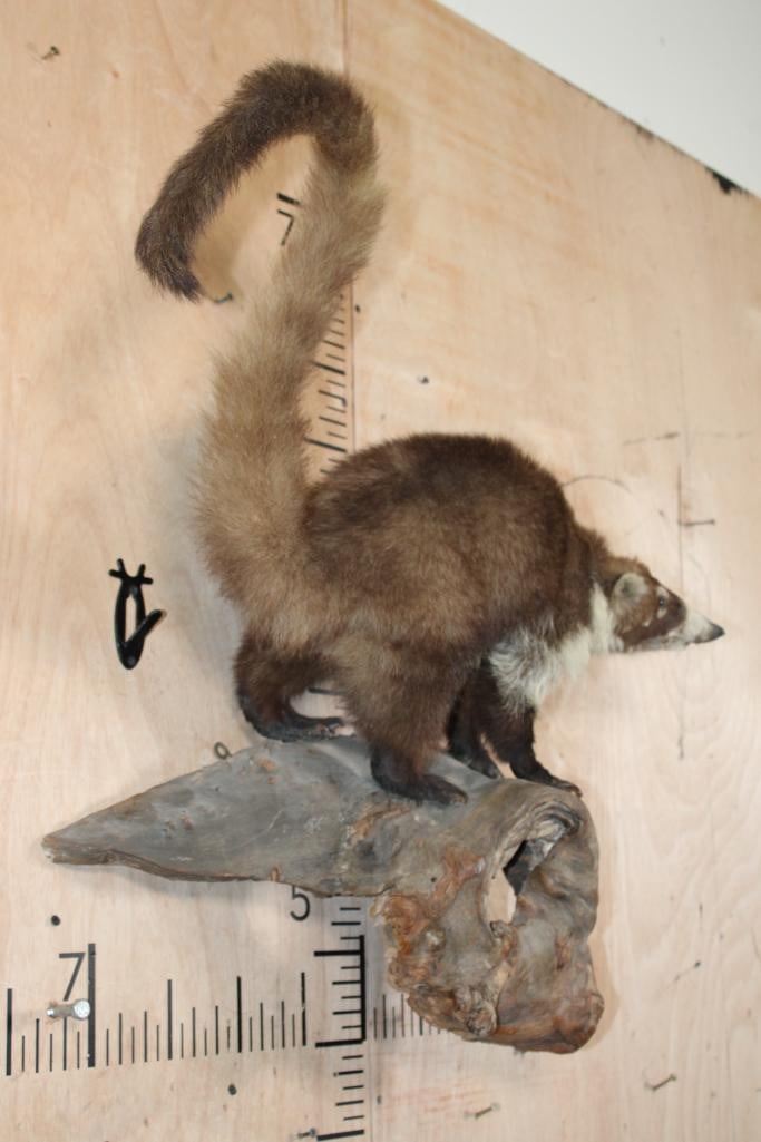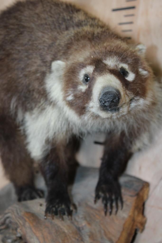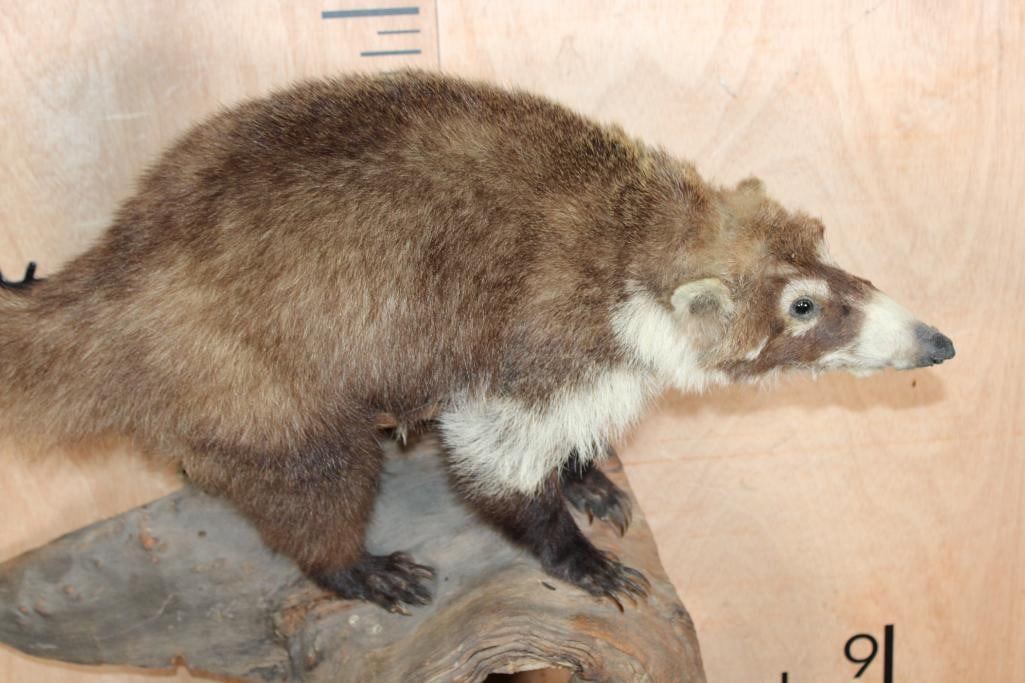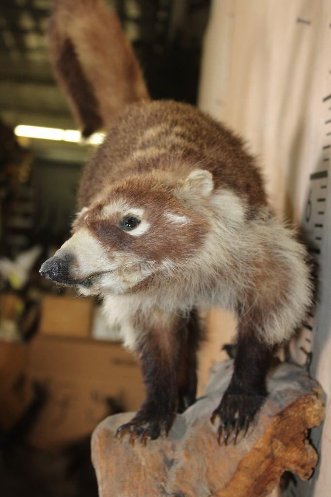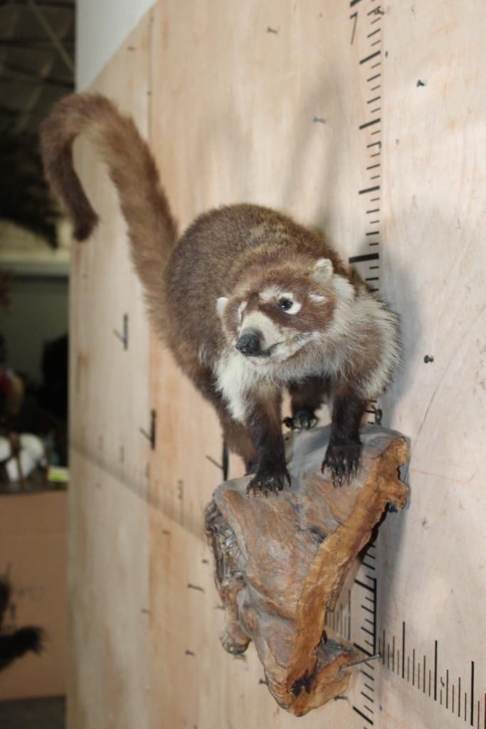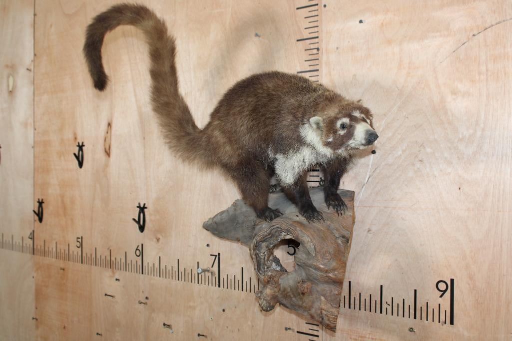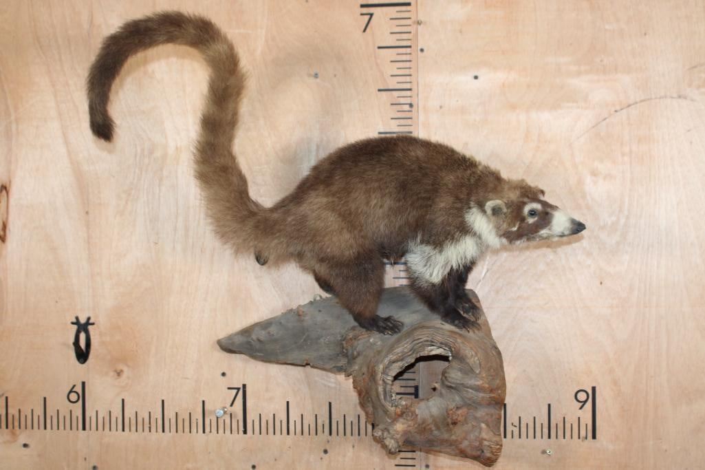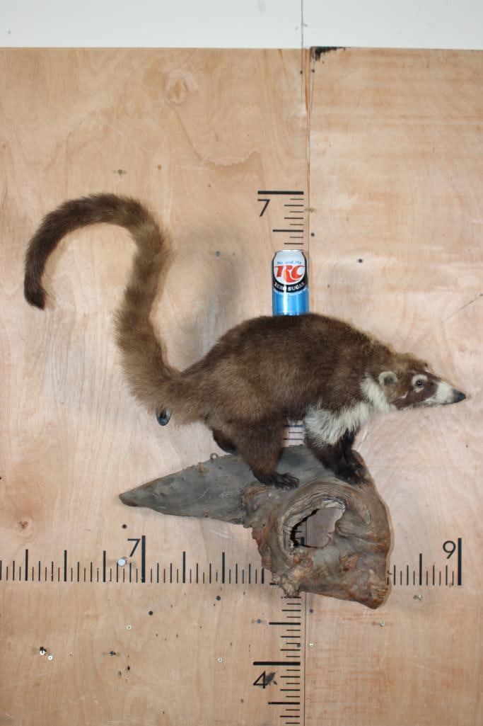 Very Nice Life-sized COATI or COATIMUNDI on a Driftwood Base. It measures 30" Long x 28" Tall x 10" Depth and is in Good Condition. The coatimundi is a diurnal mammal that is native to South America, Central America, Mexico, and the Southwestern United States. TAXIDERMY