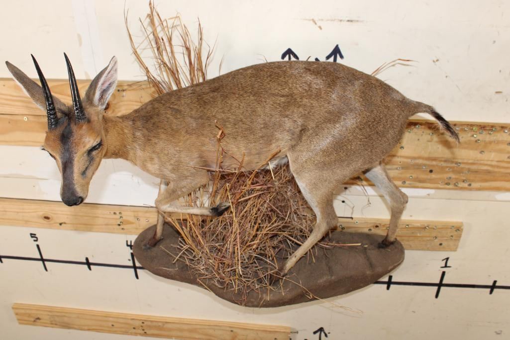 Very Nice, Clean, and Newer Life-sized COMMON DUIKER on a Wall Hanging Base. It measures 28" Long x 32" Tall x 18" Depth. It is in Very Good Condition. TAXIDERMY