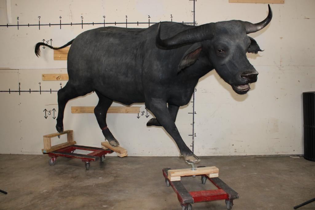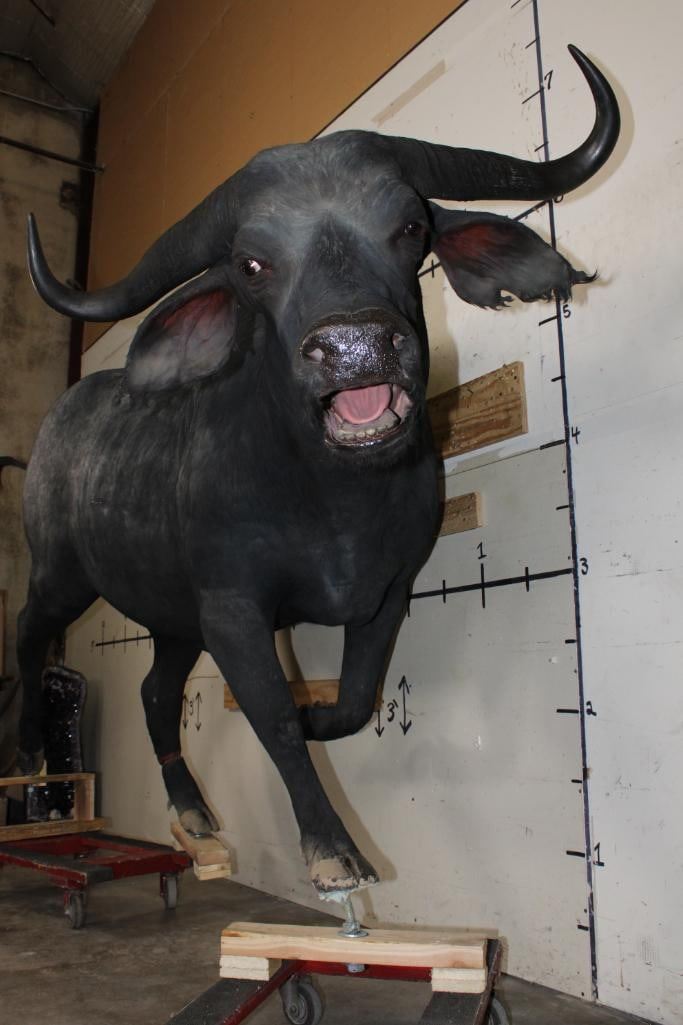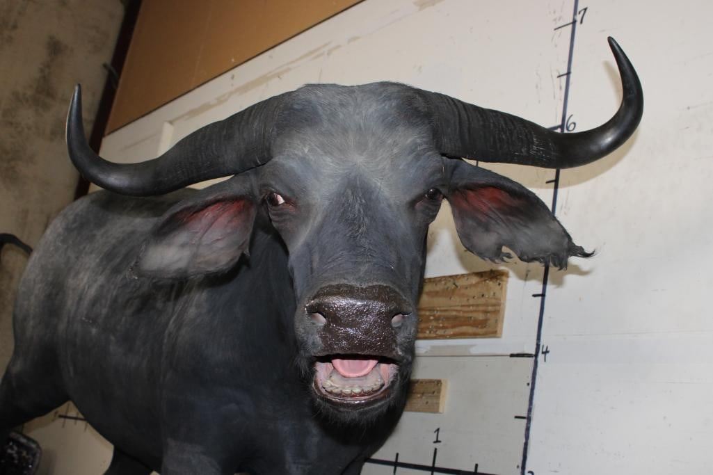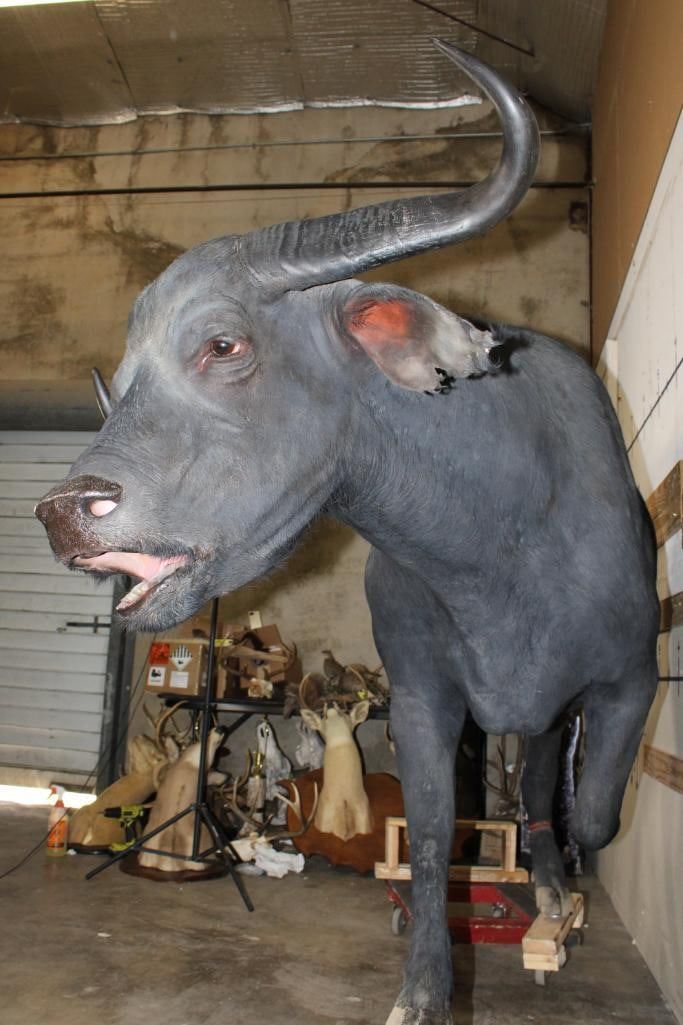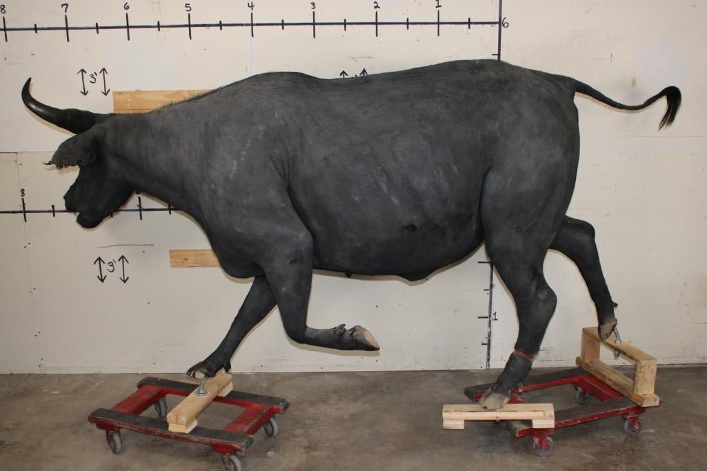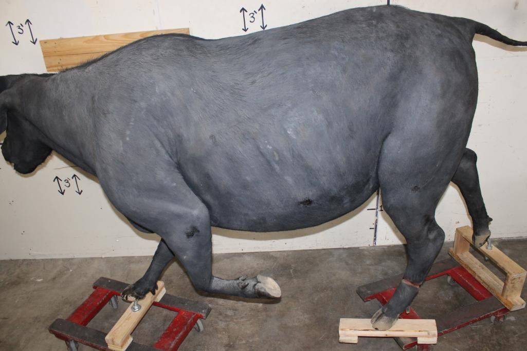 Very Nice, Clean, and Newer Life-sized Female/Cow CAPE BUFFALO from Africa in Very Good Condition. It has a 38" Spread and measures 9' 5" Long x 5' Tall x 4' Wide. He has bolts and has been secured to wooden boards for transport. TAXIDERMY