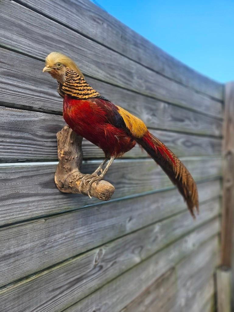 Strikingly Beautiful Life-sized GOLDEN PHEASANT Bird Mount. TAXIDERMY BIRDS