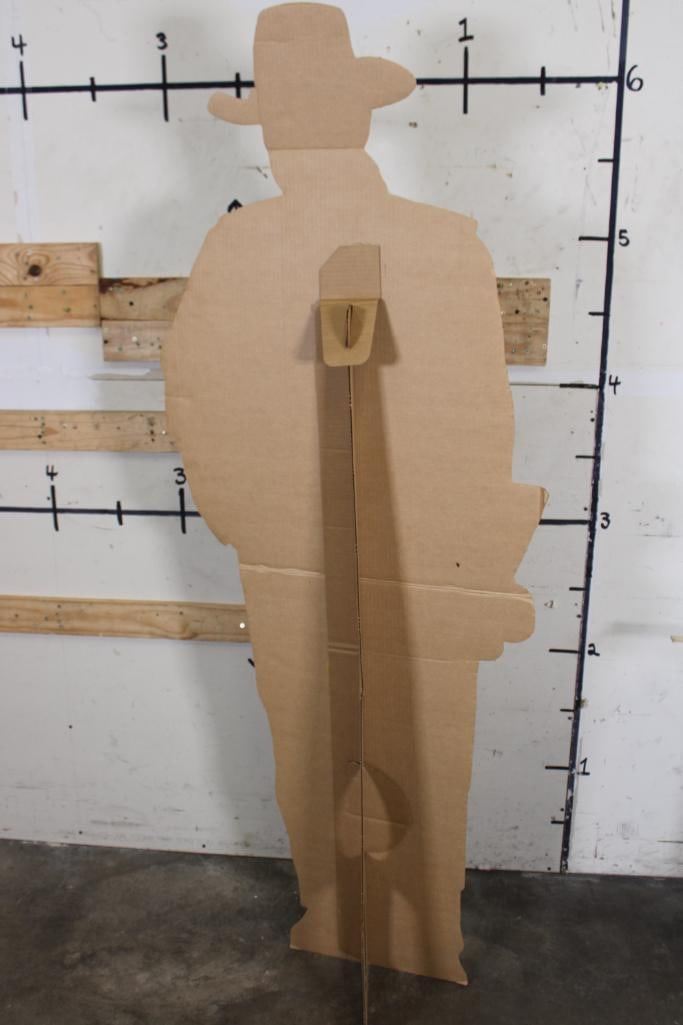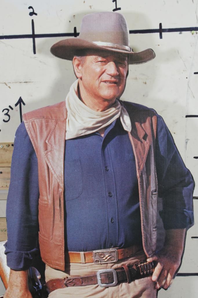 Life-sized John Wayne "The Duke" Cardboard Cutout. He measures 6'3" Tall and is in Good Condition. John Wayne's screen name, "John Wayne," was not a name he chose for himself. He was born Marion Robert Morrison. Raoul Walsh, the director of his first major film, "The Big Trail", felt that Morrison's name was not suitable for a movie star. WESTERN AND COWBOY COLLECTIBLES