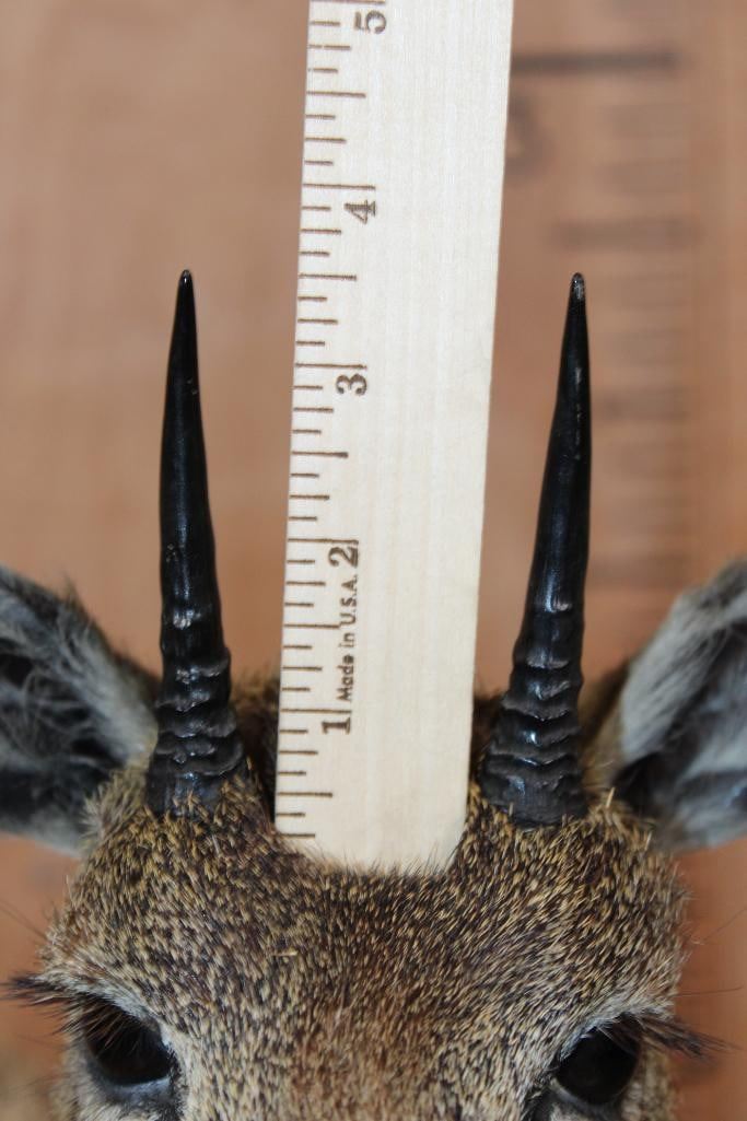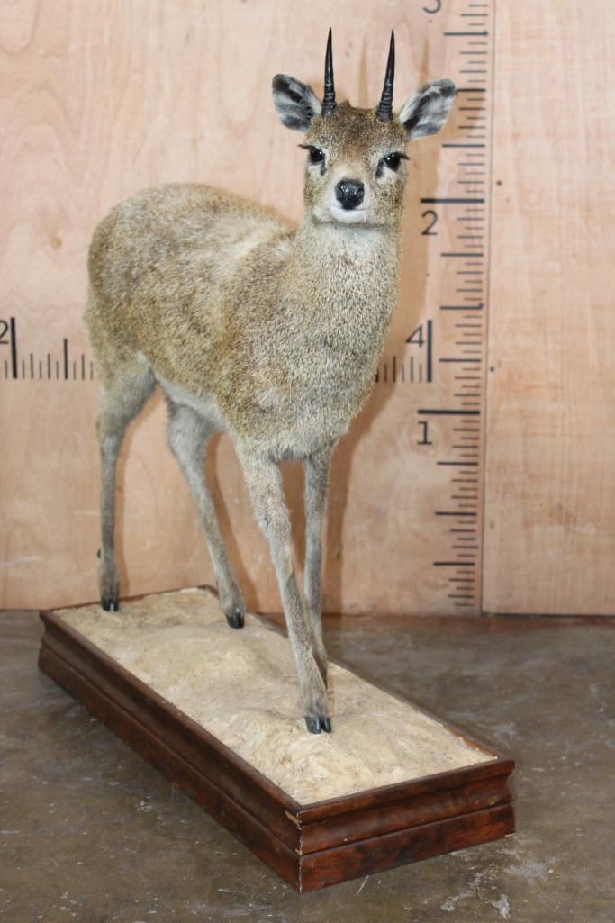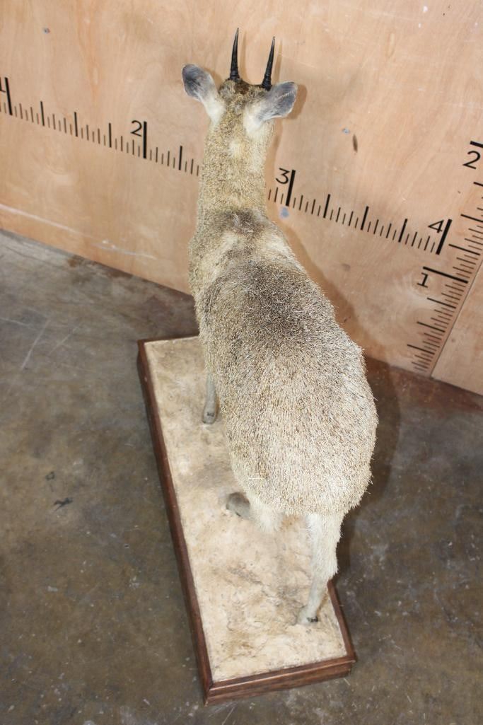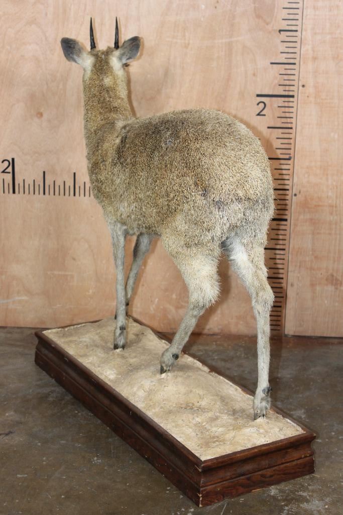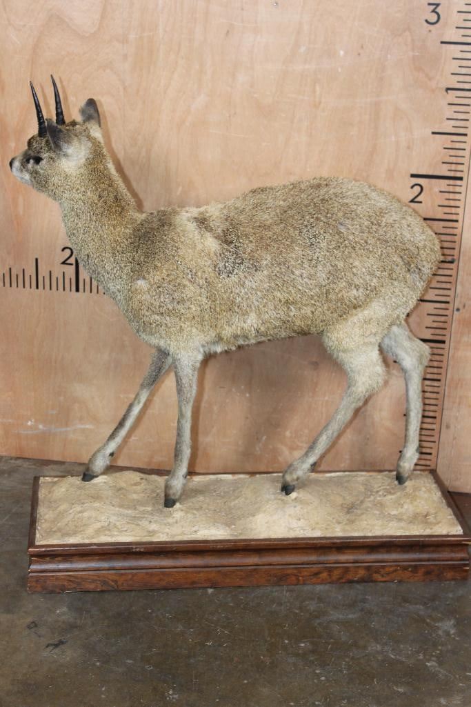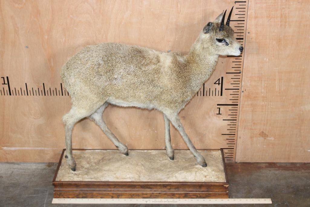 Nice, Clean, and Newer Life-sized KLIPSPRINGER. The Total Mount measures 30" Long x 10" Wide x 32" Tall. It is mounted on a Wood Base and is in Good Condition. TAXIDERMY