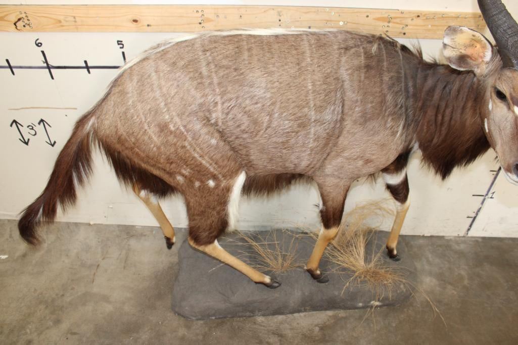 Very Nice, Clean, and Newer Life-sized NYALA on a simulated Rock Base. The Right Horn measures 24.75" Long and the Left Horn measures 25" Long. The Total Mount measures 62" Long x 28.5" Wide x 67" Tall. TAXIDERMY