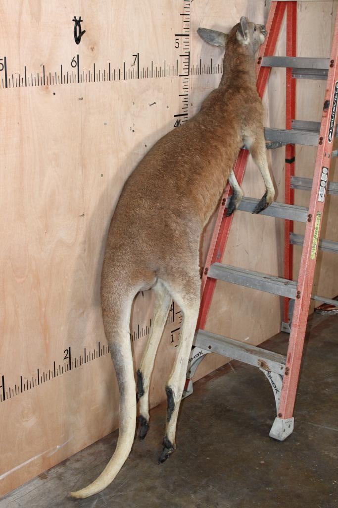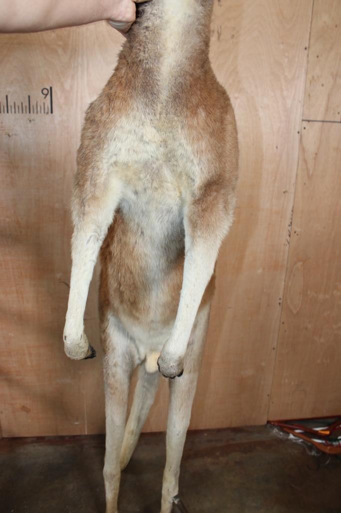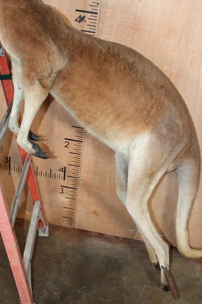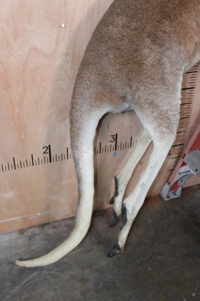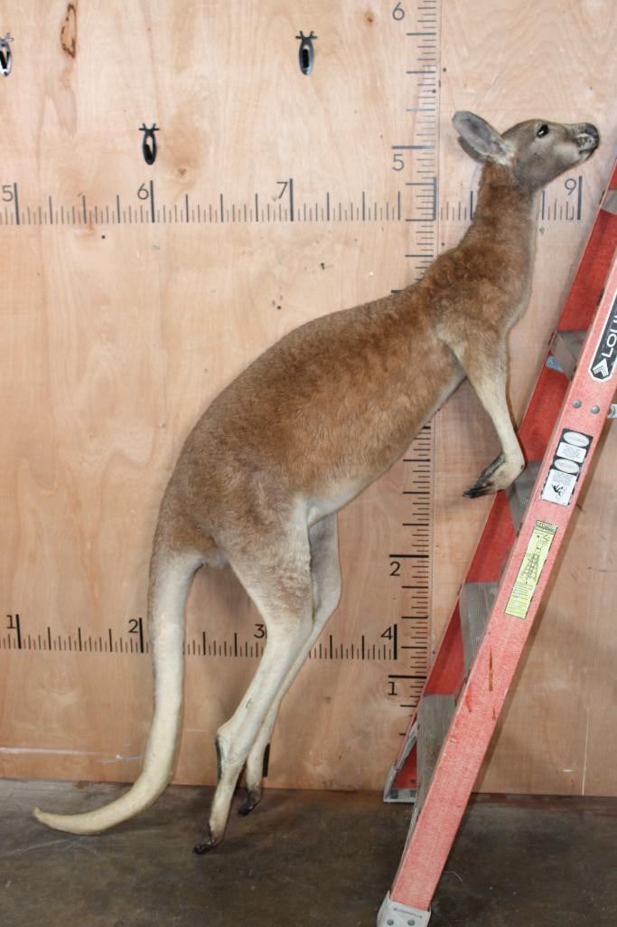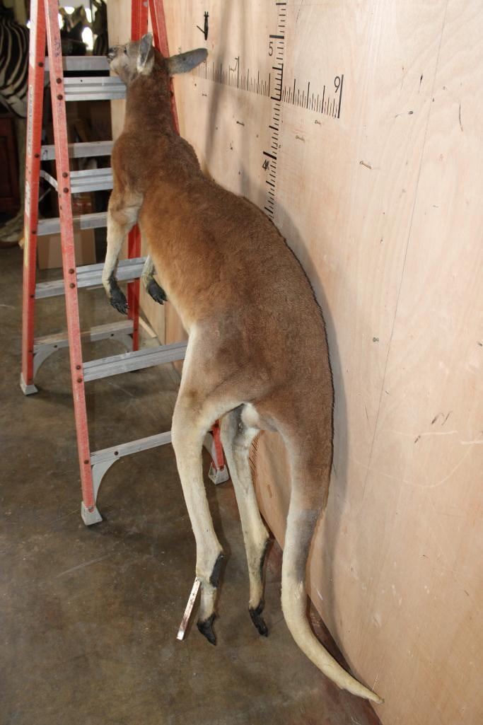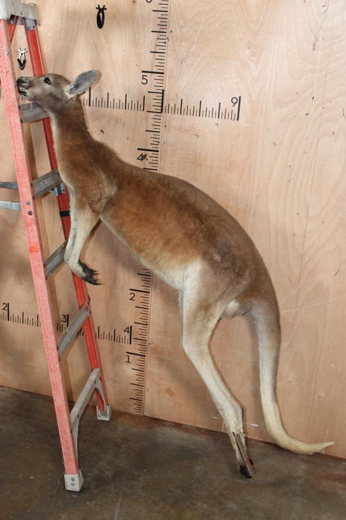 Nice Life-sized RED KANGAROO. It has No Base but a 3/4" Male Square Receiver. It measures 4' Long x 5' 3" Tall and is in Good Condition. TAXIDERMY