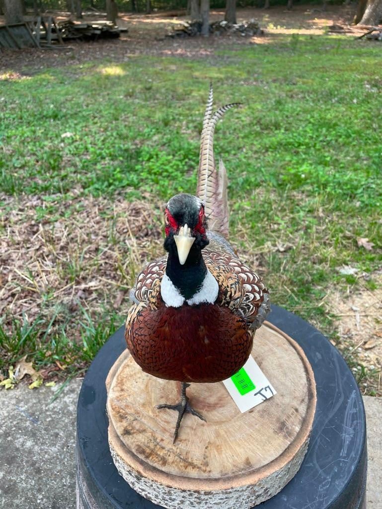 Life-sized Ring-necked PHEASANT Mounted on a Wood Slice
