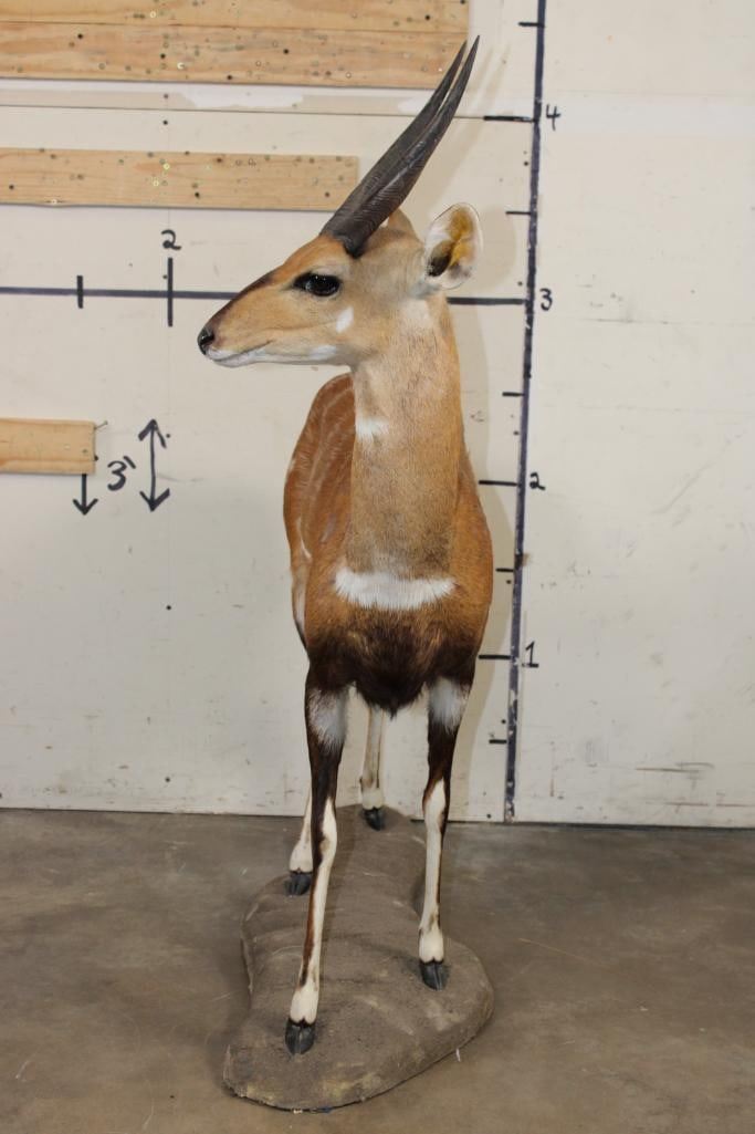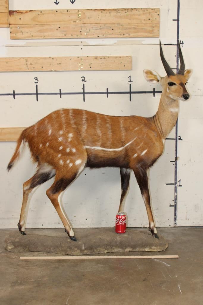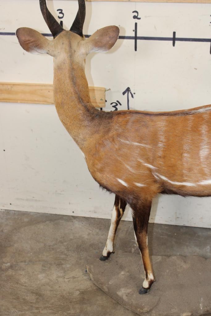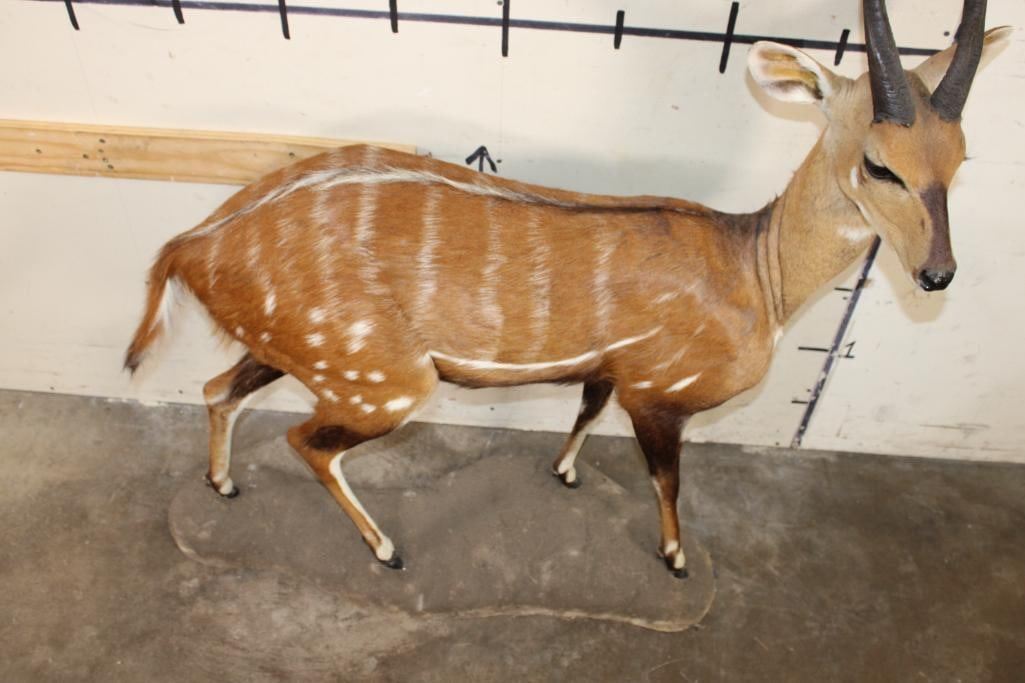Very Nice Life-sized WESTERN BUSHBUCK on light-weight Foam Base. It measures 46" Long x 15" Wide x 49" Tall and is in Very Good Condition. TAXIDERMY