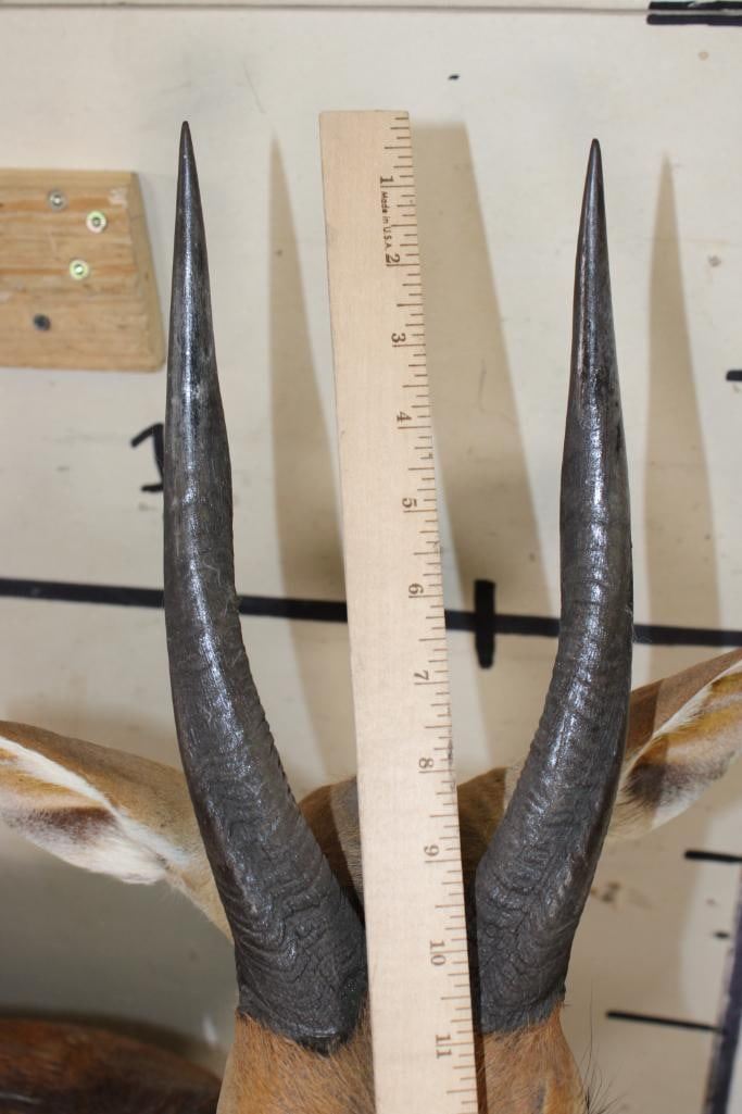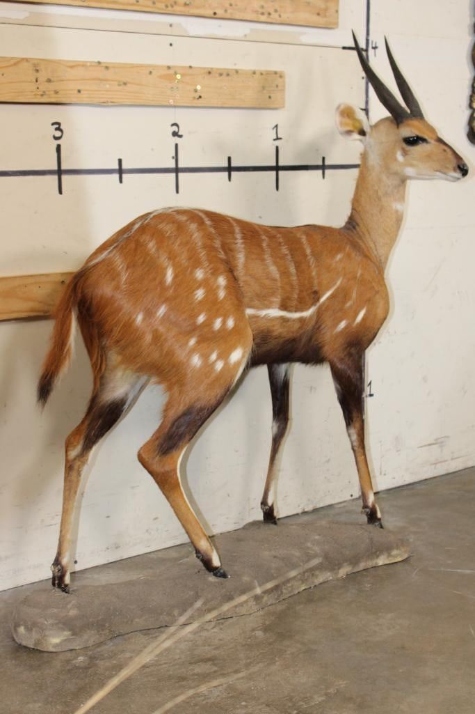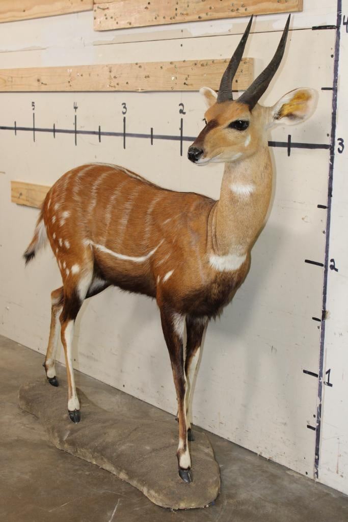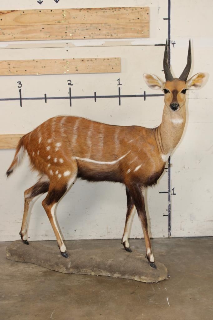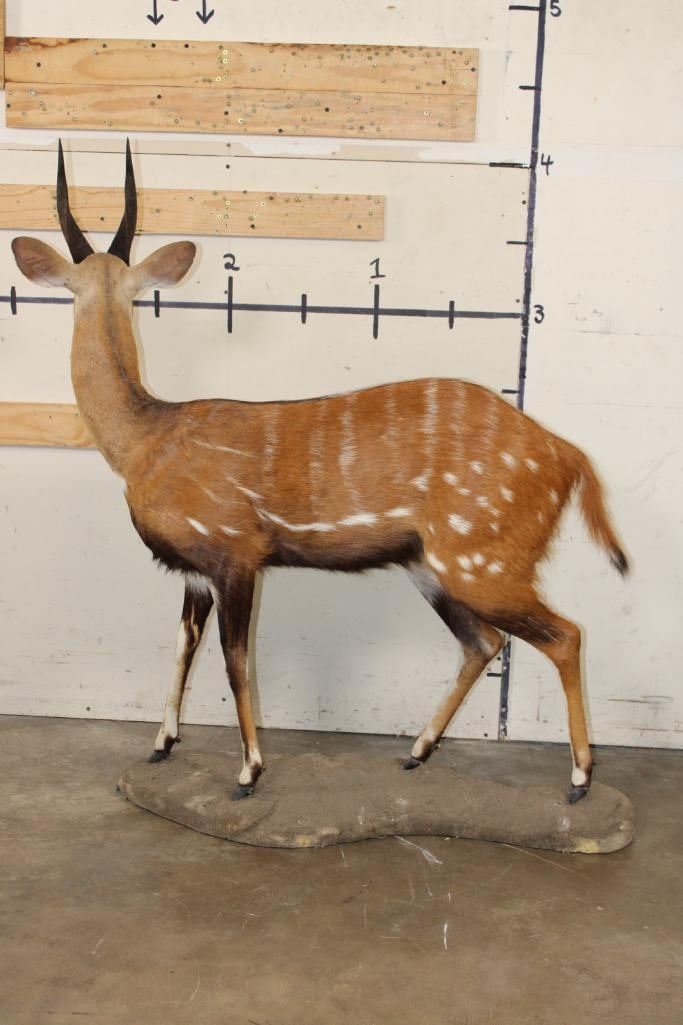 Very Nice Life-sized WESTERN BUSHBUCK on light-weight Foam Base. It measures 46" Long x 15" Wide x 49" Tall and is in Very Good Condition. TAXIDERMY