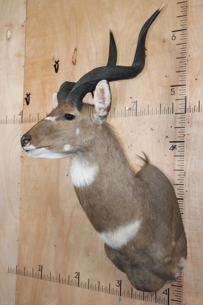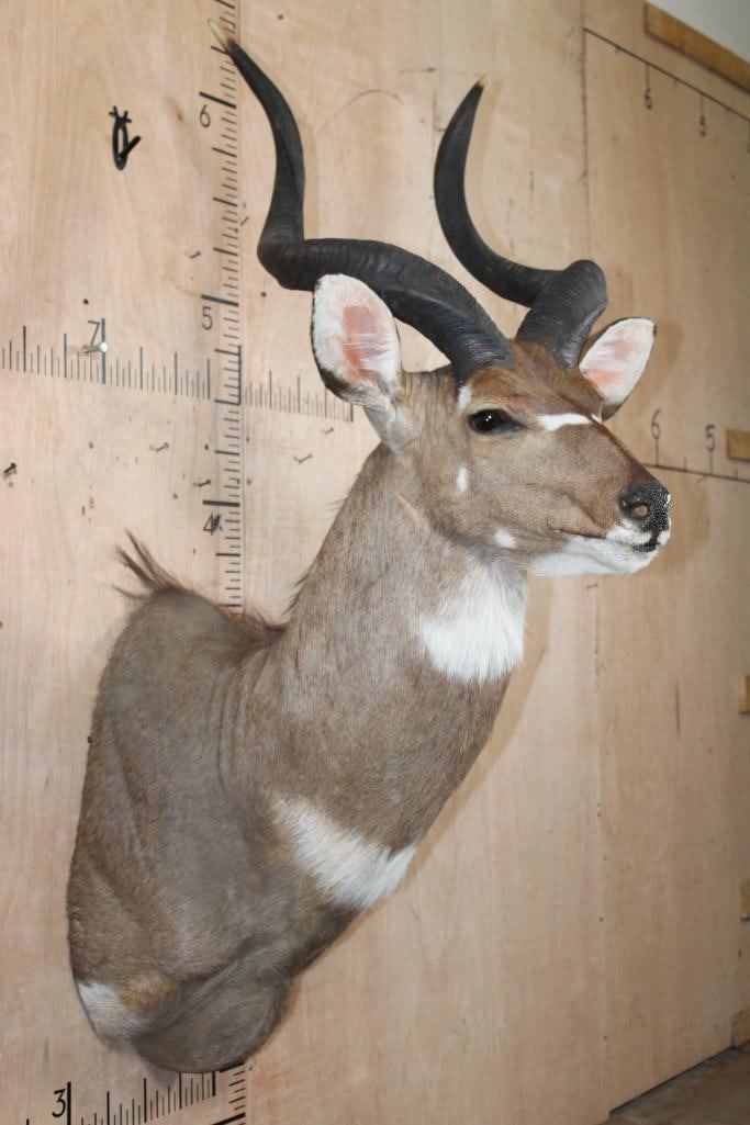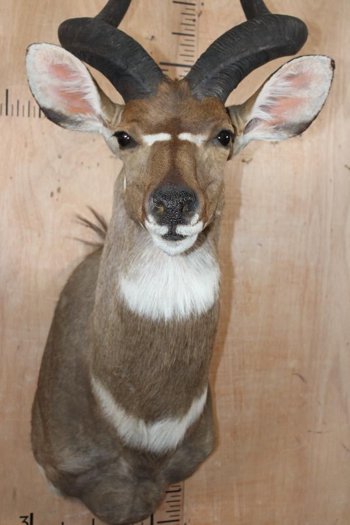 *Like New* MOUNTAIN NYALA Shoulder Mount. The Left Horn measures 35.25" and the Right Horn measures 34 1/8" Long around the Spiral Ridge. TAXIDERMY