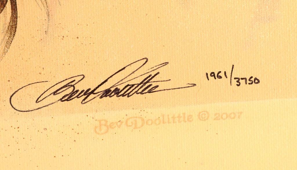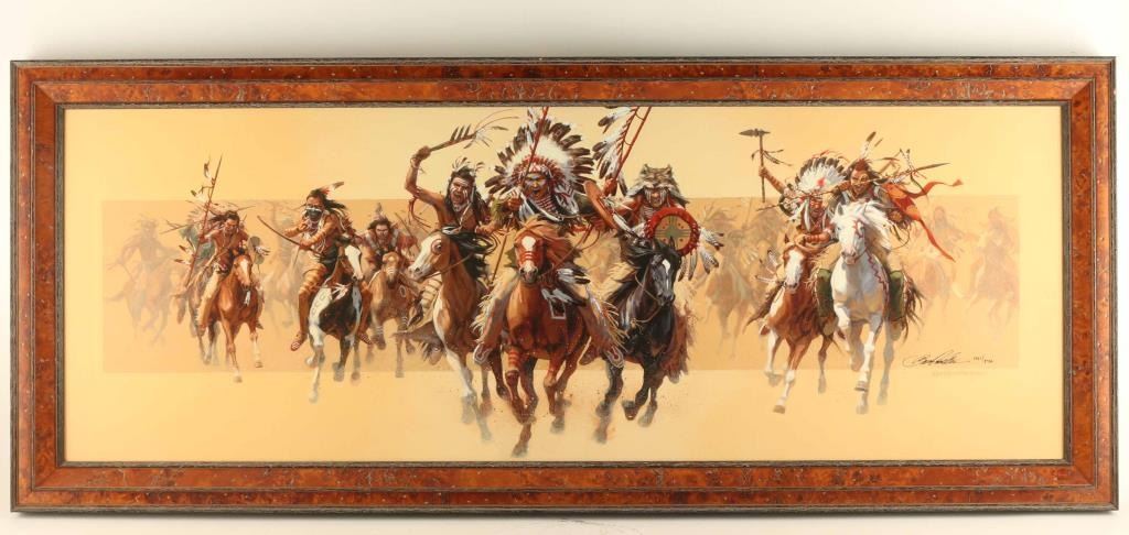 by Bev Doolittle 1961/3750 hand signed in pen, depicts indian warriors. Image size is 43"x16".