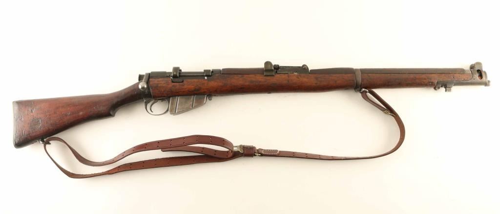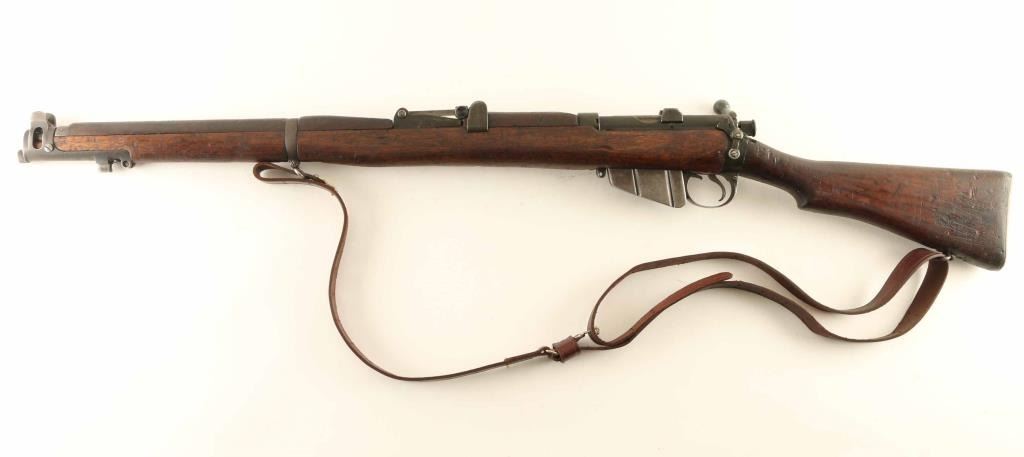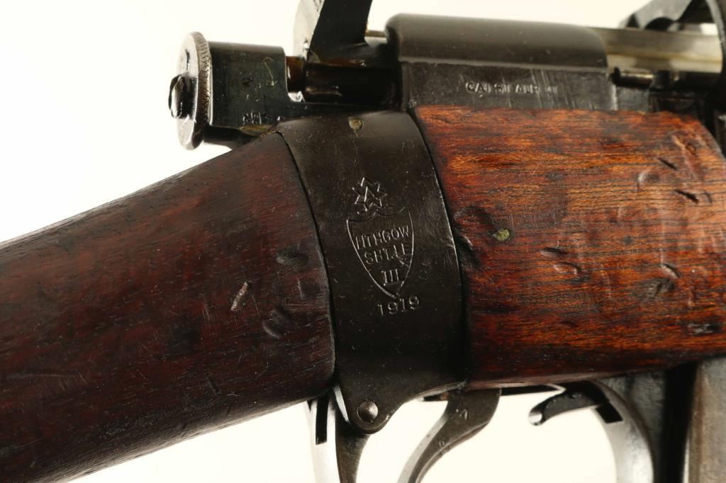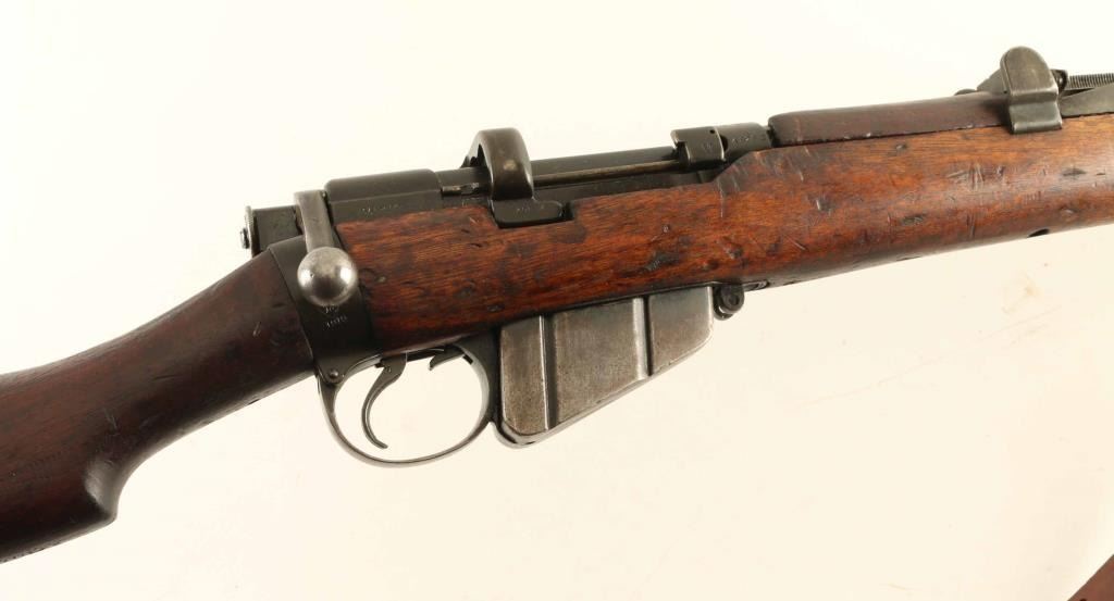 Rifle. Bolt-Action. WW1 issued British military issue rifle. SMLE, Short, Magazine, Lee-Enfield. 1919 dated. Imported by CAI (Right receiver) 25.2" barrel with sliding ramp rear and fixed post front sights with protectors. Fed from detachable 10-rd box magazine.4- piece hardwood stock. Brass buttplate. Bore is rough/dirty. Action is smooth/tight. Metal has turned a dull Blue/gray color. Wood has numerous scratches/dings common is military rifles. Comes with a incorrect leather claw sling. NRA Condition-Good. C&R Firearm.