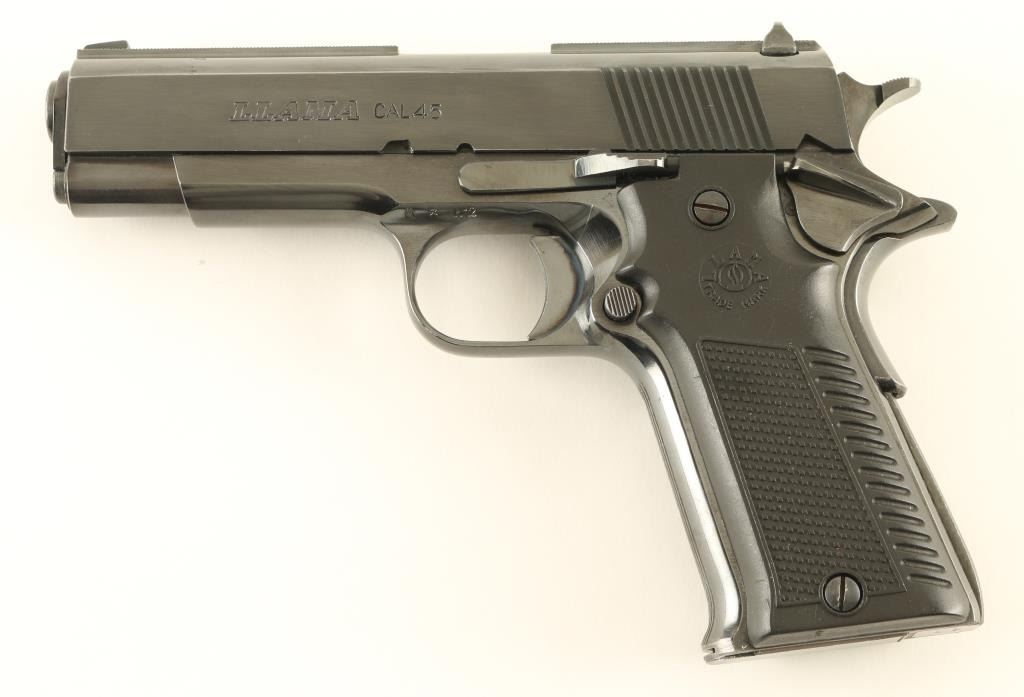 Spanish semiautomatic pistol imported by Stoeger Industries, S Hackensack NJ. Features blued finish, checkered black plastic grips with "LLAMA" logo, single action trigger, 4.25" barrel, fixed sights, frame mounted manual safety, grip safety. Bore is excellent condition. Overall condition is like new with few signs of handling. Includes one magazine. Condition is NRA Excellent - Like New *** Modern Firearm ***