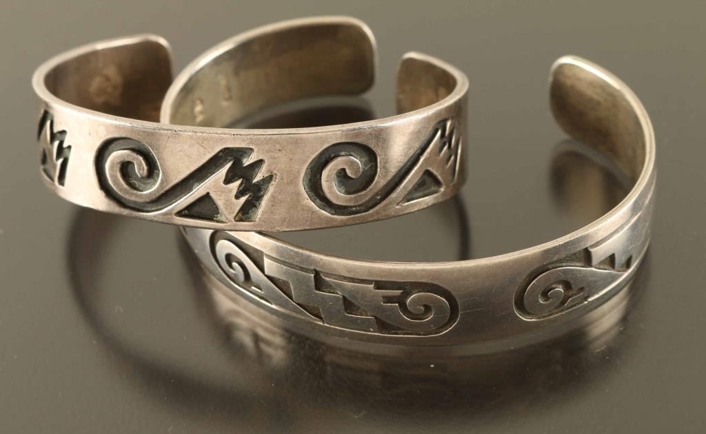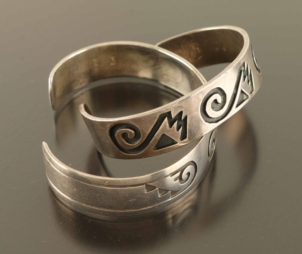 Both Are Sterling Both With Geometric Designs.