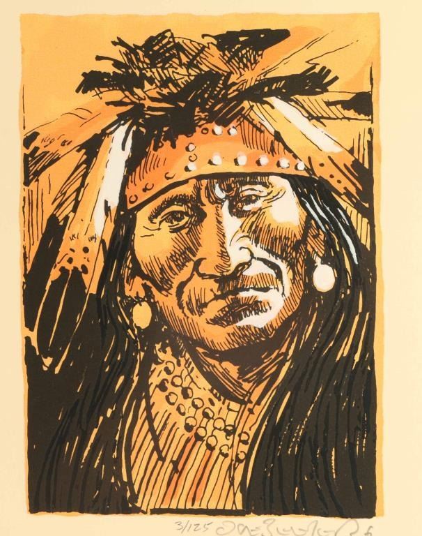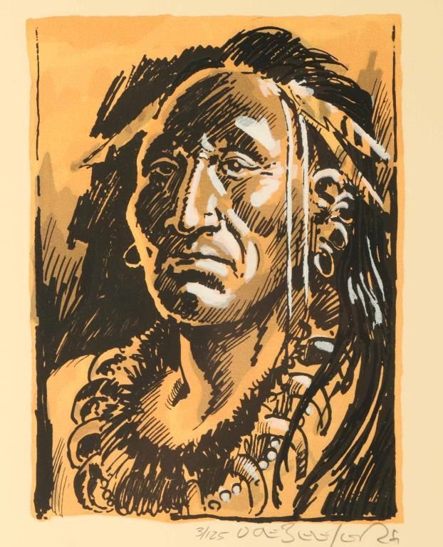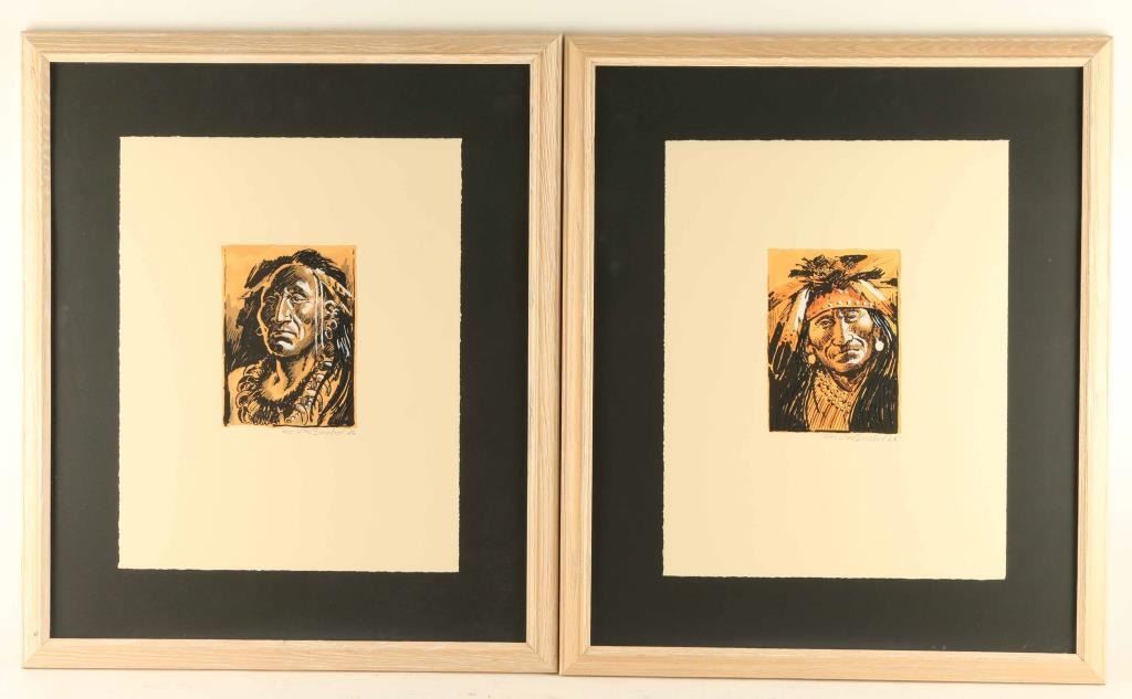 Includes (2) untitled Joe Beeler lithographs, The works depicting an Indian man. These lithographs comes with a letter from the company that produced the lithographs . Both are framed and matted and have an image size of 13" by 17". Signed and are #3/125