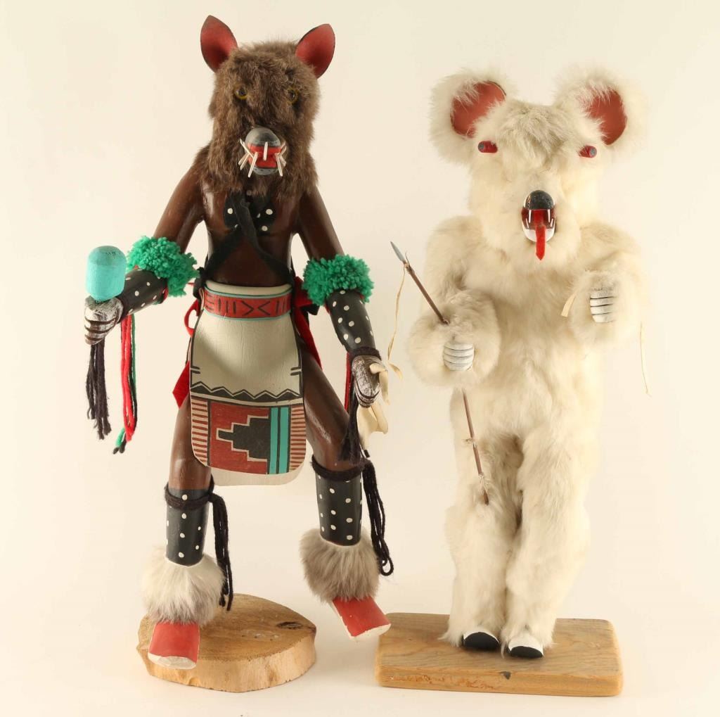 Including Wolf Dancer Kachina unsigned, and a White Bear Kachina by R. Long.