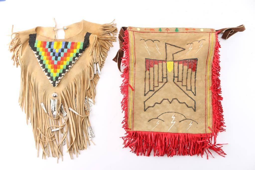 (1) Leather beaded collar with fringe