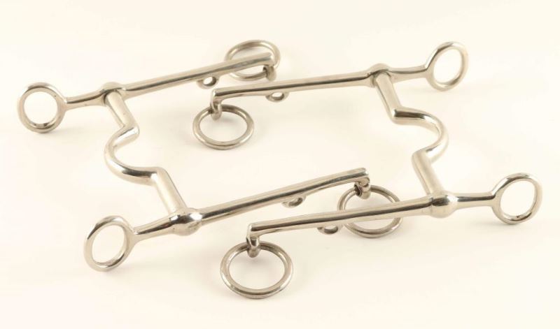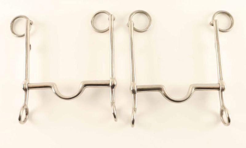 Both are nickel plated, marked "FORGED STEEL" and are in very good condition. They hung over the door at the Two Bit Ranch Stable in Villa Park for luck. The wife who got the money for the ranch, stable, horses, ect. was very lucky. The husband who got the bits felt lucky also because he got rid of an Old Nag and some horses in the divorce. He is quoted as saying "My wife always likes those bits, they were easy on her mouth."