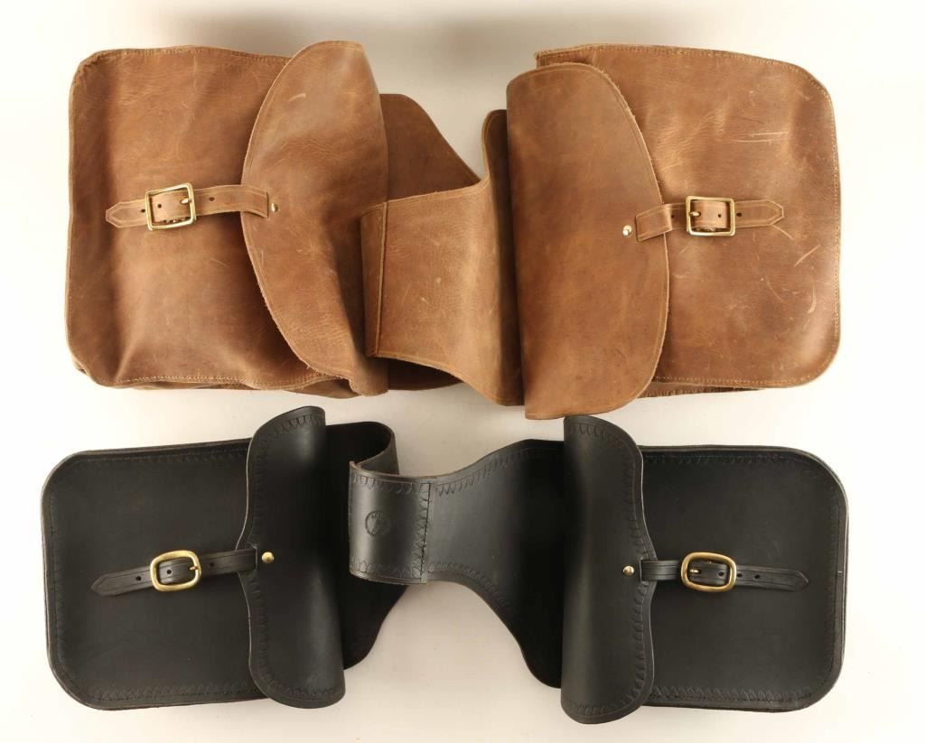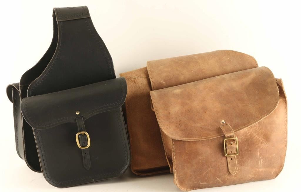 Includes (1) Black set of saddle bags, and (1) Large brown set of soft leather saddle bags. From Arizona Leathersmith Bill Myers, all genuine leather.