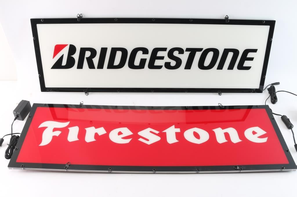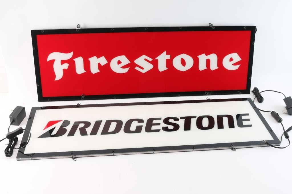 Firestone & Bridgestone light up signs. Each measure 36"W x 11.5"H.