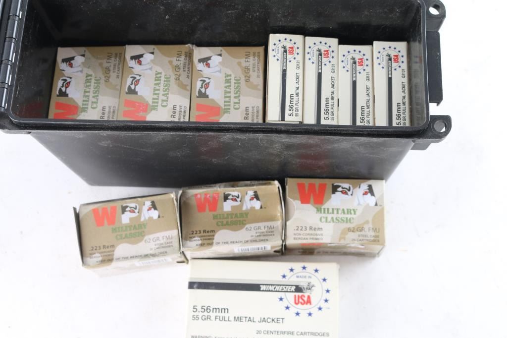 Approx. 180 rounds of WPA .223 Remington ammunition and 100 rounds of Winchester 5.56. All in factory boxes.