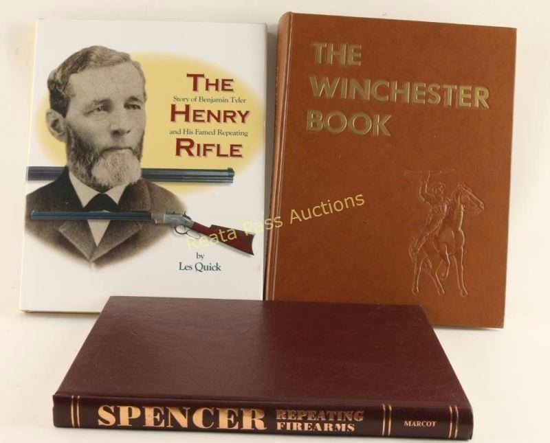 "The Henry Rifle" by Les Quick-First Edition, "Spencer Repeating Firearms" by Roy M. Marcot-signed by author, and "The Winchester Book" by George Madis-signed by the author First Edition.