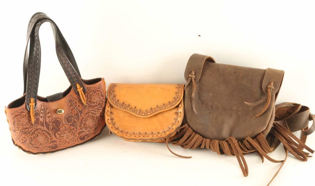 Includes (3) bags from Arizona Leathersmith Bill Myers. Two Shoulder bags and one hand bag.