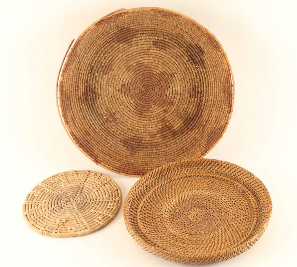 Largest one is 13" diameter with a star pattern heavy losses to edges, Medium one is plain and measures 10" and third smallest is just a flat measuring 7".